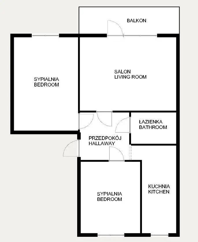 Pomieszczenia: salon + 2x sypialnia + przedpokój + balkon + łazienka + kuchnia.