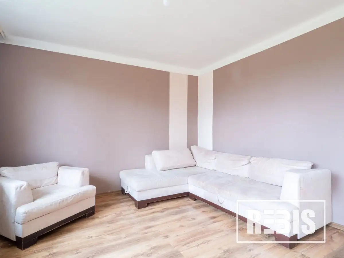 Flooring: laminate flooring, terracotta tiles. Rooms: living room + 2 bedrooms + hallway + balcony + bathroom + kitchen.