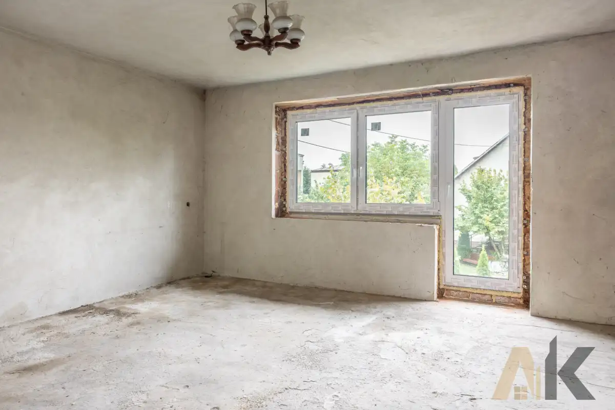 o wymiarach ok.20 m × 25. m. Budynek wzniesiony z cegły, dach kryty blachą. Posesja w części ogrodzona (siatka), z dostępem bezpośrednio do asfaltowej drogi. Budynek wymaga generalnego remontu, co daje przyszłym właścicielom możliwość aranżacji wnętrz według własnych potrzeb i stworzenia przestrzeni idealnie dopasowanej do stylu życia.