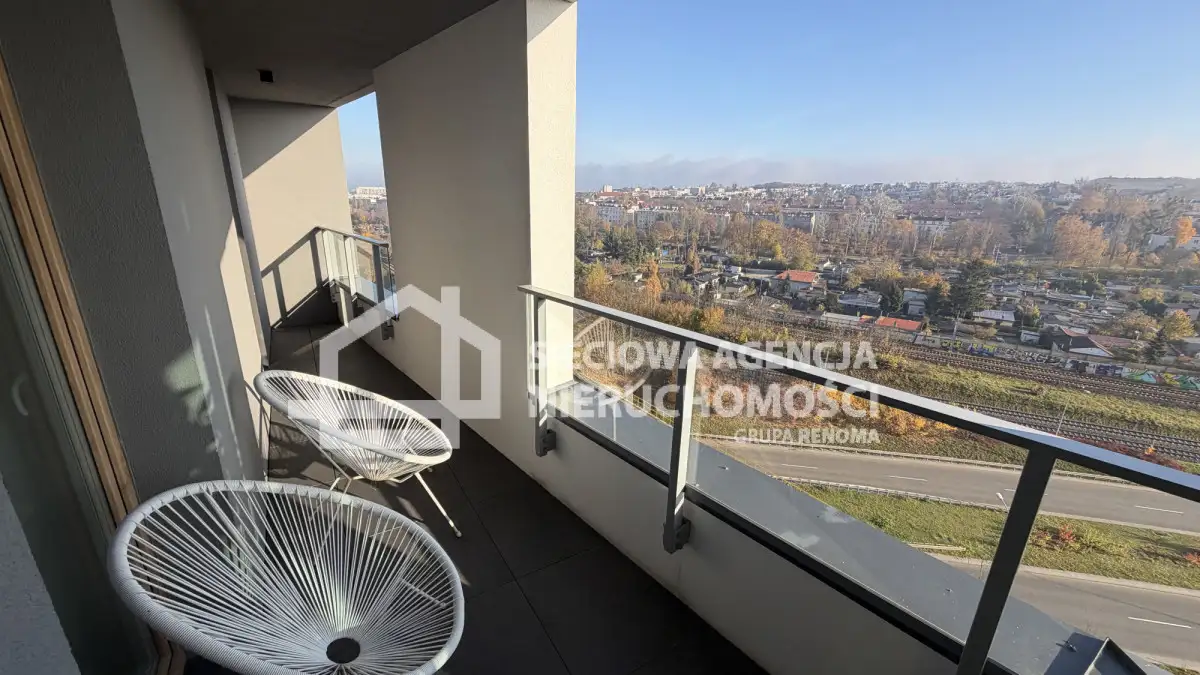 - salon z aneksem kuchennym, z wyjściem na taras a z niego widok na panoramę miasta i las