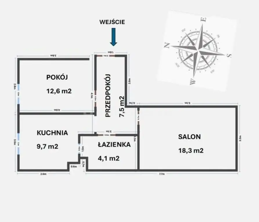 52,2 m² 2 pokoje Balkon Gotowe do zamieszkania