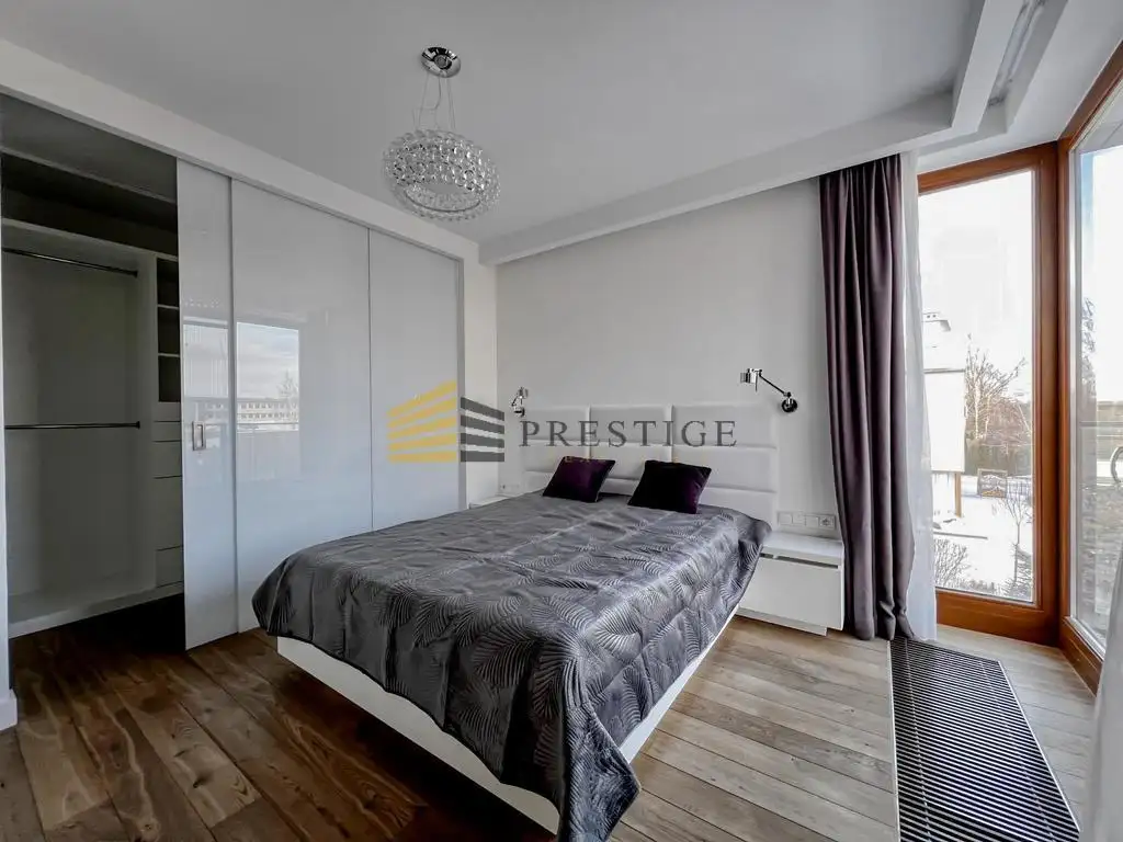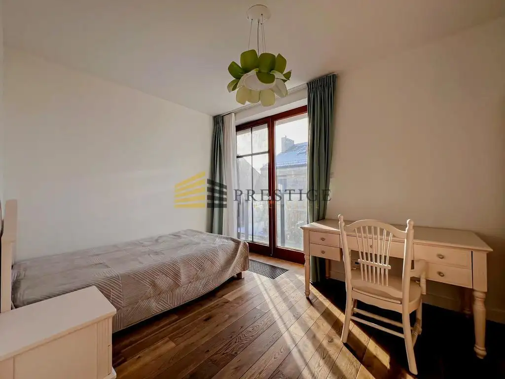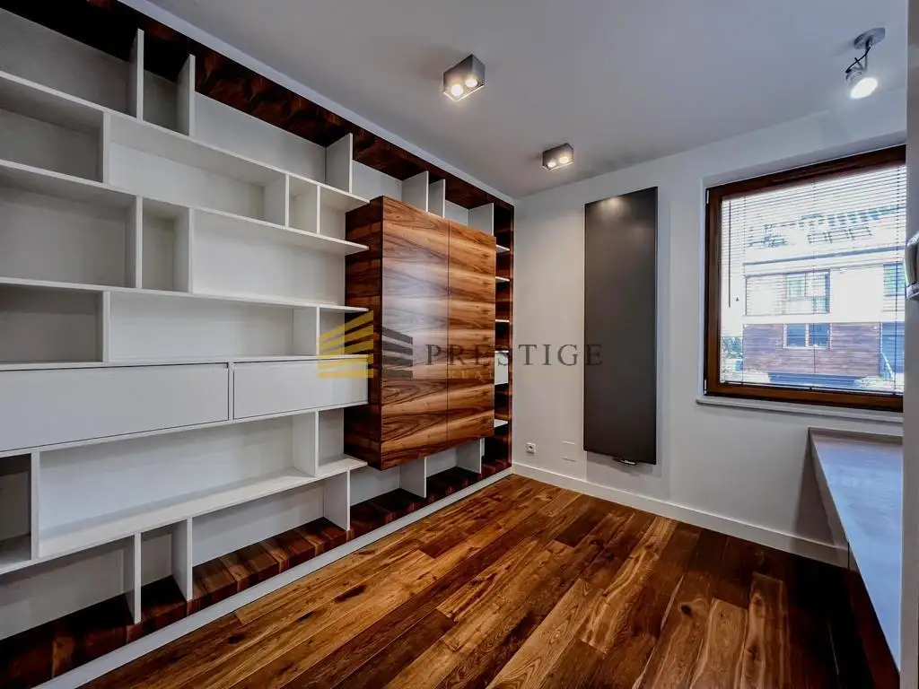 Situated in the exclusive Harmonium Compound, this home is in close proximity to the American School of Warsaw in Bielawa. The compound offers round-the-clock security and monitoring, providing a sense of security and privacy. The proximity to the Kabacki Forest and the Botanical Garden in Powsin adds to the appeal of this location. Residents have access to ample walking space and a playground for children. Numerous shops and bus stops are conveniently located nearby.