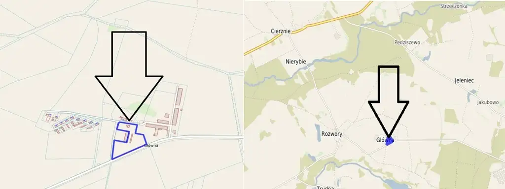 Nieruchomość gruntowa zabudowana położona w gminie Debrzno, oznaczona w ewidencji gruntów obrębu Rozwory w miejscowości Główna jako działka nr 342/53 o pow. 1,5793 ha zabudowanej budynkiem kuźni oraz budynkiem gospodarczym w skład której wchodzą grunty rolne zabudowane Br-RIIIb – 1,2124 ha, Br-RIVa – 0,3669 ha dla której w Sądzie Rejonowym w Człuchowie prowadzona jest księga wieczysta o nr SL1Z/00020696/5.
