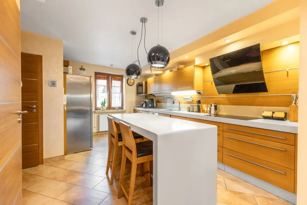 - pokój dzienny z jadalnią o pow. 34,25m² (kominek, zejście do ogrodu),