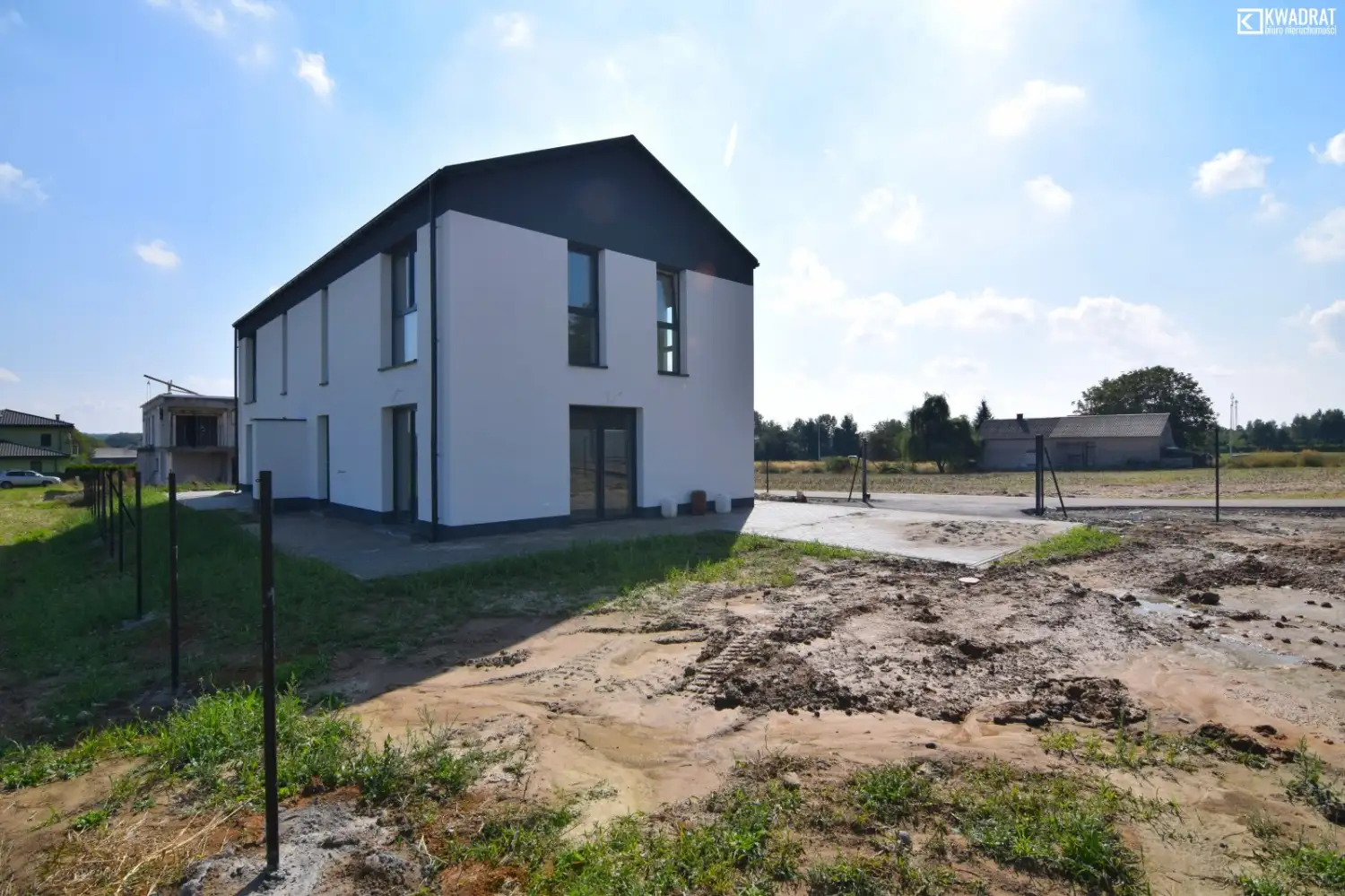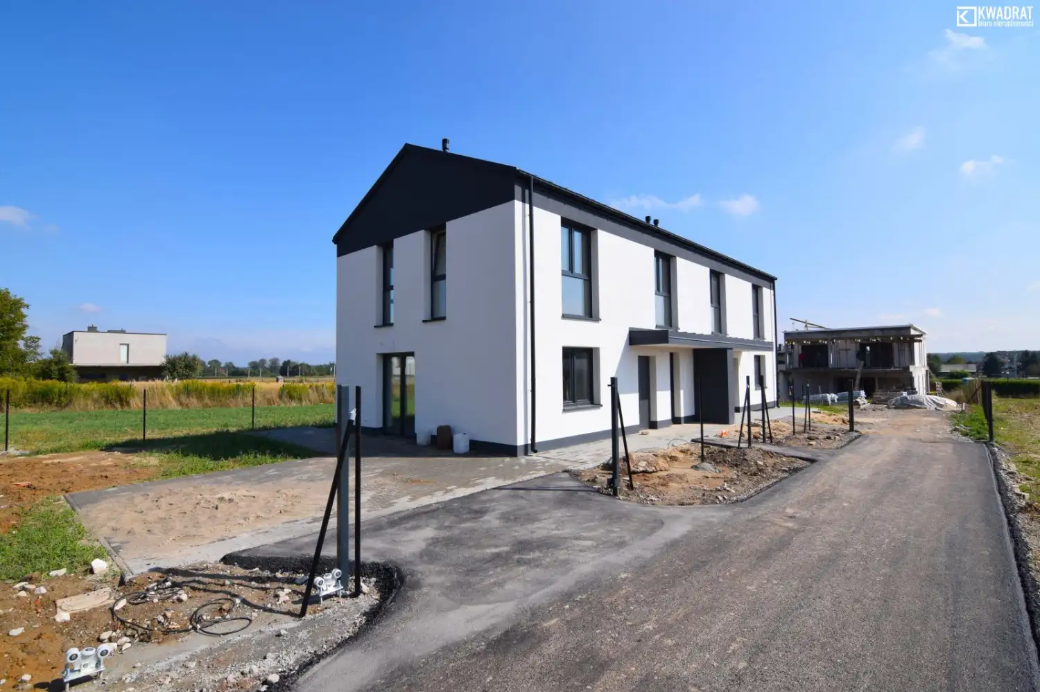 Powierzchnie: powierzchnia użytkowa połówki: ok. 94 m² (2 pełne kondygnacje bez skosów) + strych, 2 zewnętrzne miejsca postojowe z kostki brukowej.