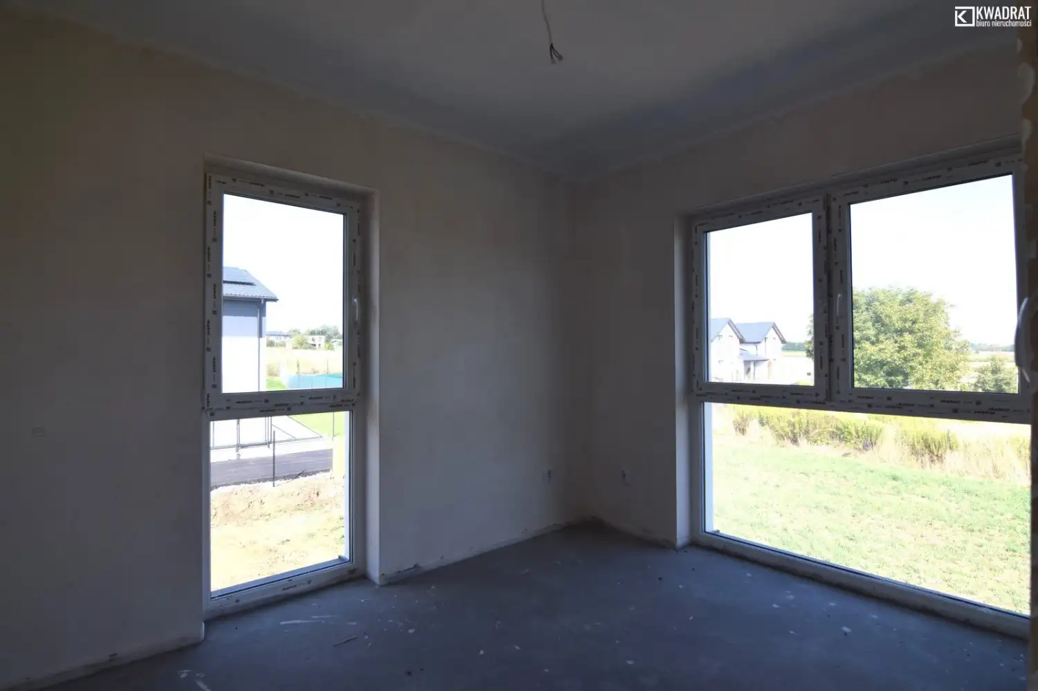 Technologia budowy: ściany z betonu komórkowego 24cm, dach kryty blachą w rąbek, ocieplenie poddasza - piana 25 cm, stropy monolityczne, schody betonowe, wylewki betonowe ocieplone styropianem 15cm+styrobeton (na poddaszu 5 cm styropianu), okna PCV 3-szybowe (Aluprof), brama wjazdowa przesuwna, ogrodzenie z siatki, kostka brukowa - miejsca postojowe i opaska; elewacja - styropian 20cm + izolacja pionowa styrodur, tynki wewnętrzne gipsowe, biały montaż, drzwi zewnętrzne stalowe, furtka na posesję, wyłaz na strych. Ogrzewanie podłogowe w całym domu + grzejniki w łazienkach - z pieca gazowego, ujęcie wody ogrodowej.