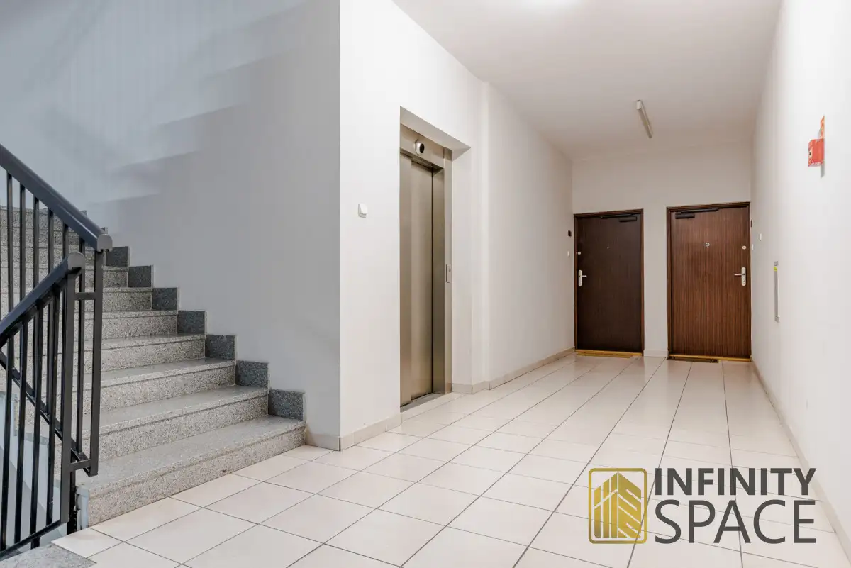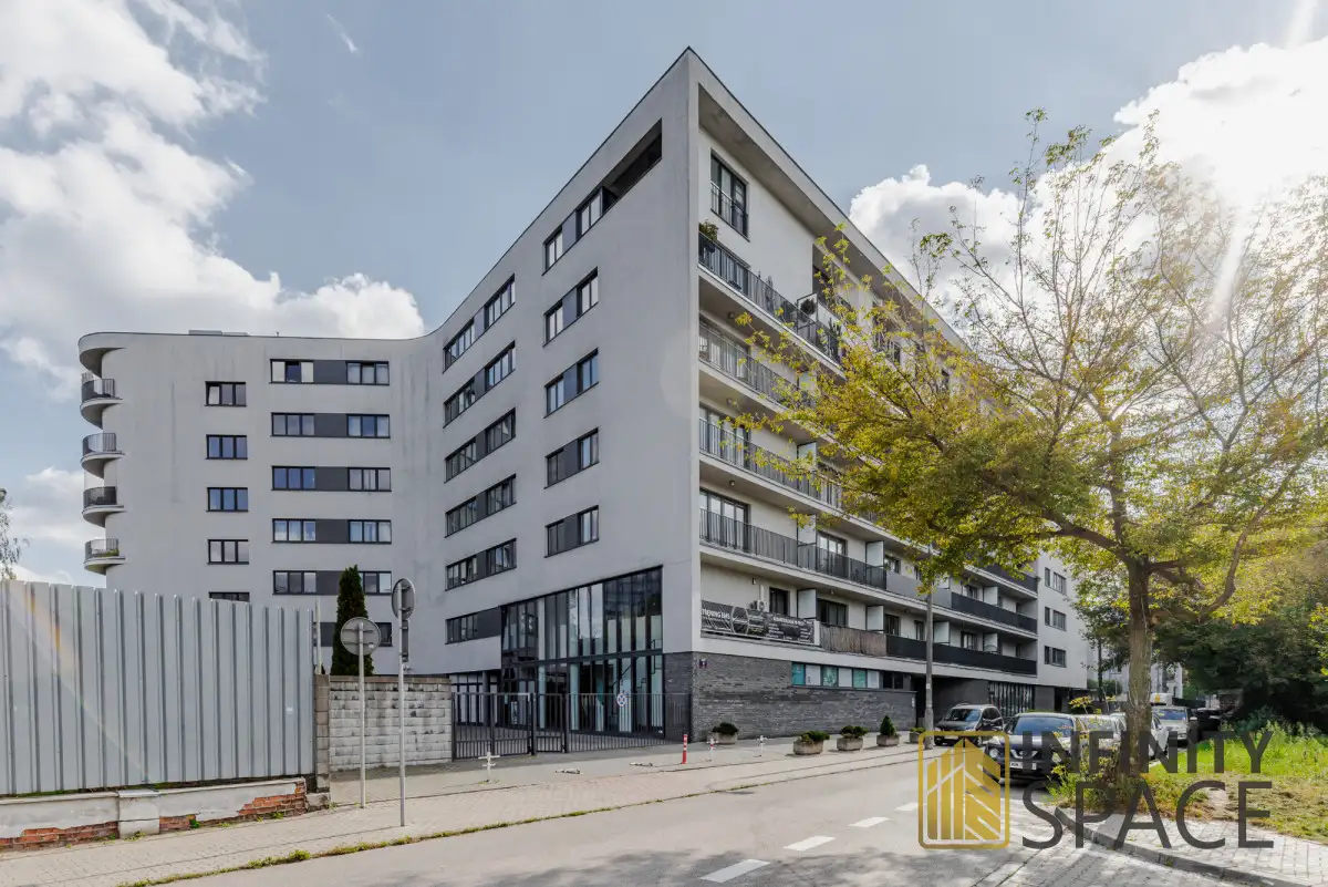 Mieszkanie znajduje się na czwartym piętrze sześciopiętrowego budynku z 2007 roku wybudowanego w bardzo dobrym standardzie z windą. Klatki schodowe są schludne i zadbane. Otoczenie budynku jest pełne zadbanej zieleni. Osiedle jest ogrodzone, posiada ochronę 24h, monitoring, strefy relaksu oraz plac zabaw dla dzieci.