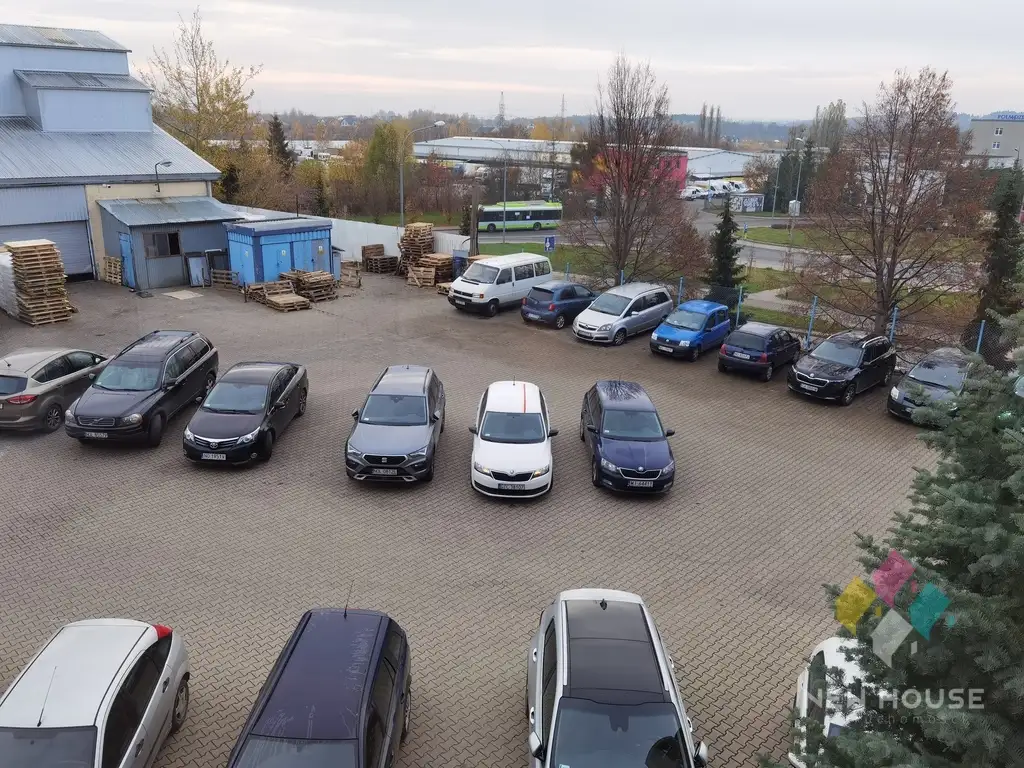 Przed budynkiem miejsca parkingowe. Blisko komunikacja miejska. Teren ogrodzony, dostępność utwardzonego placu przed budynkiem.