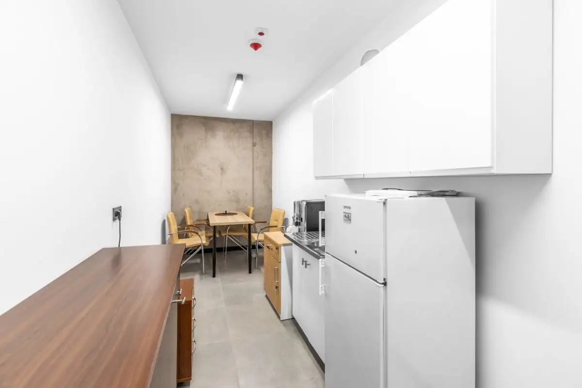 - Dodatkowe pomieszczenia: sala konferencyjna, aneks kuchenny, hall, toaleta, magazynek