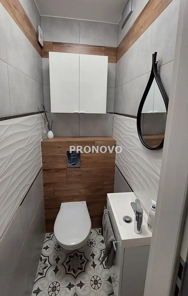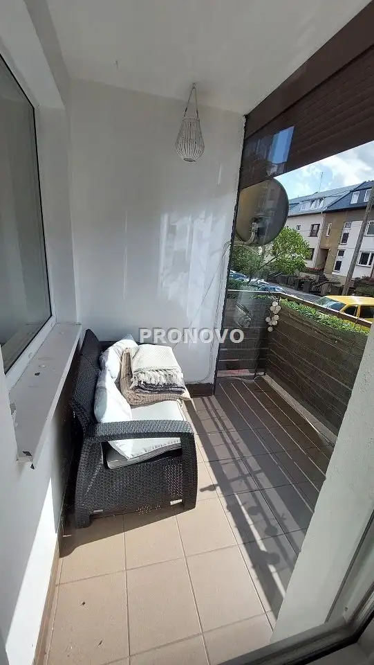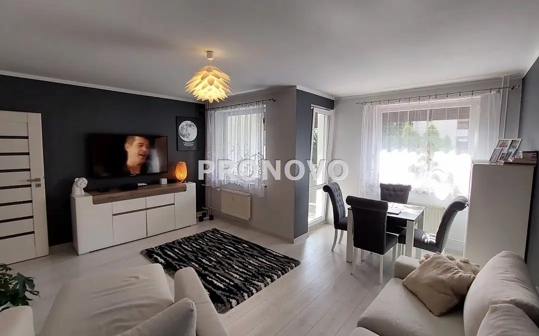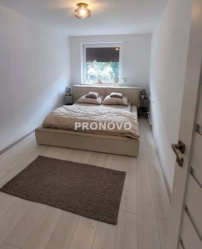 Lokal jest po generalnym remoncie w bardzo dobrym stanie i składa się z salonu 24m², sypialni 10/13m², holu 7m², oddzielnej kuchni, łazienki 3m², oddzielnie WC, balkonu, piwnicy i garażu.