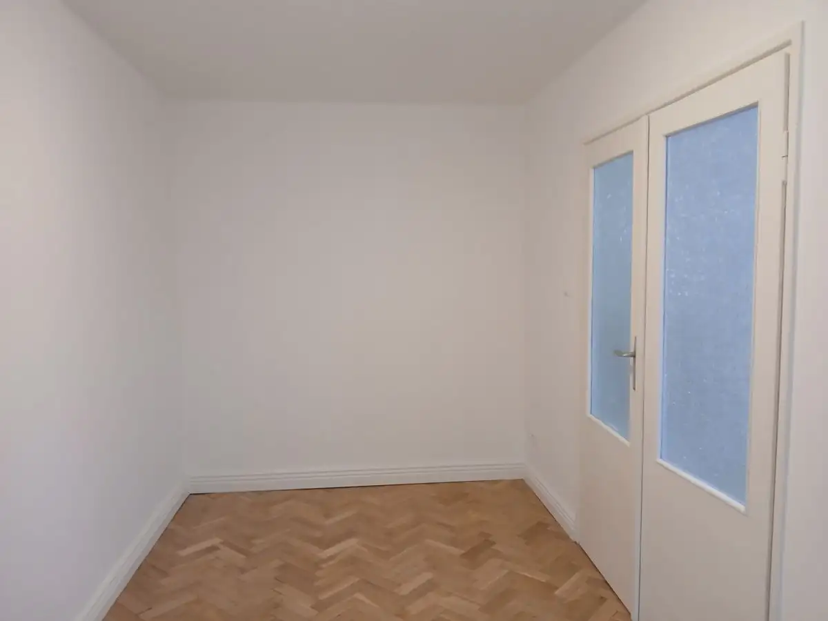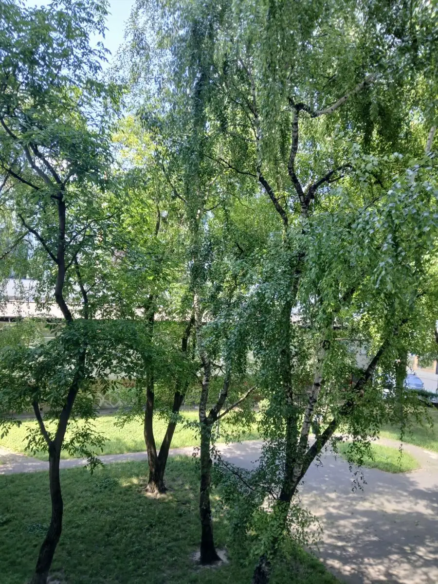 Salon i sypialnia bez mebli. Widok z okien na zieleń.