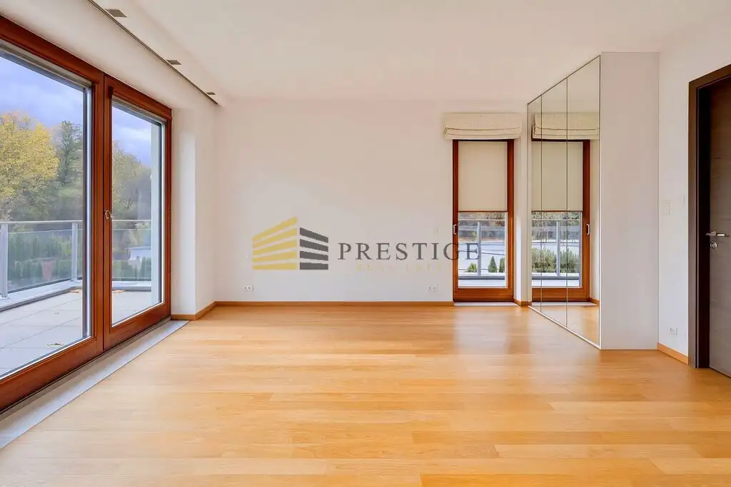 An elegant and spacious single-family home for rent, located in a prestigious part of Warsaw, on Wilanowska Avenue. Ideal for a family, it's situated in a quiet neighborhood with easy access to the city center.