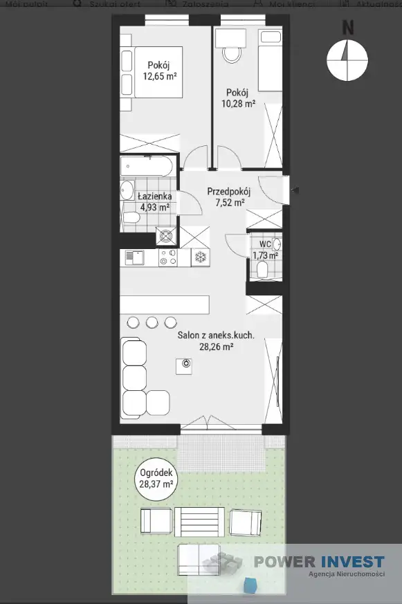 Pokój dzienny z aneksem kuchennym (28,26 m²)