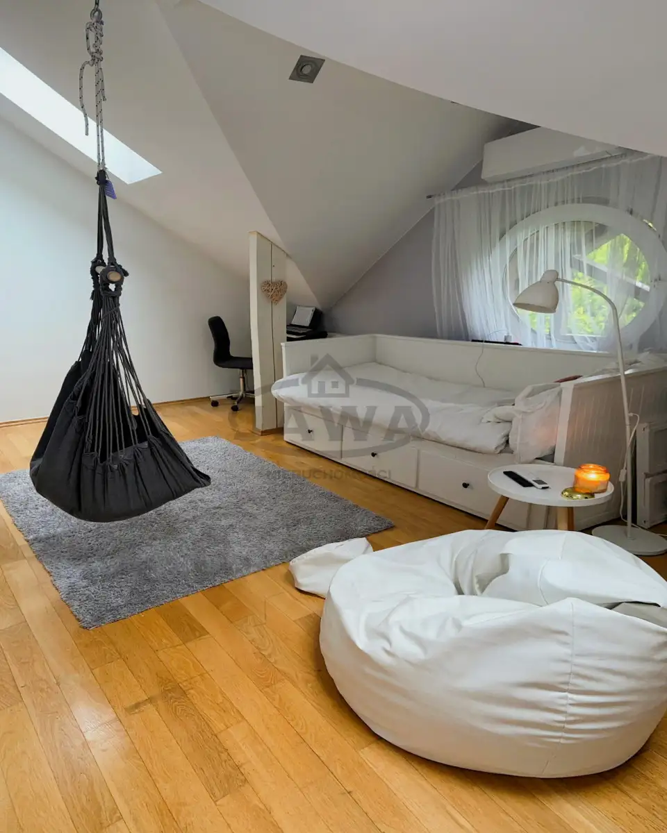 - sypialnia główna (17 m²) z zabudową pod skosem Komandor, z własną garderobą (6 m²) zabudowaną komandor
