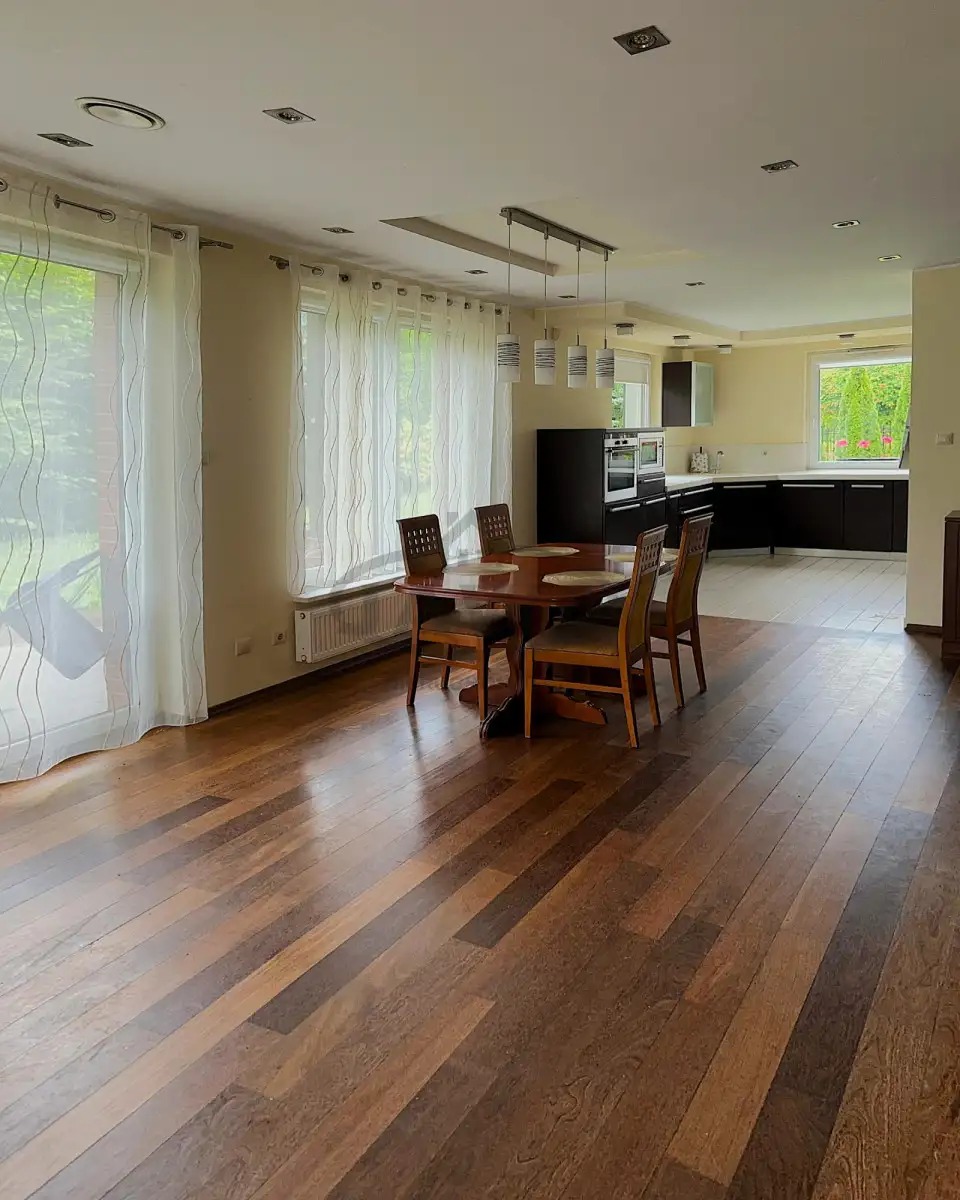 - w salonie i gabinecie podłoga z litego drewna egzotycznego - sucupira (najwyższej klasy)