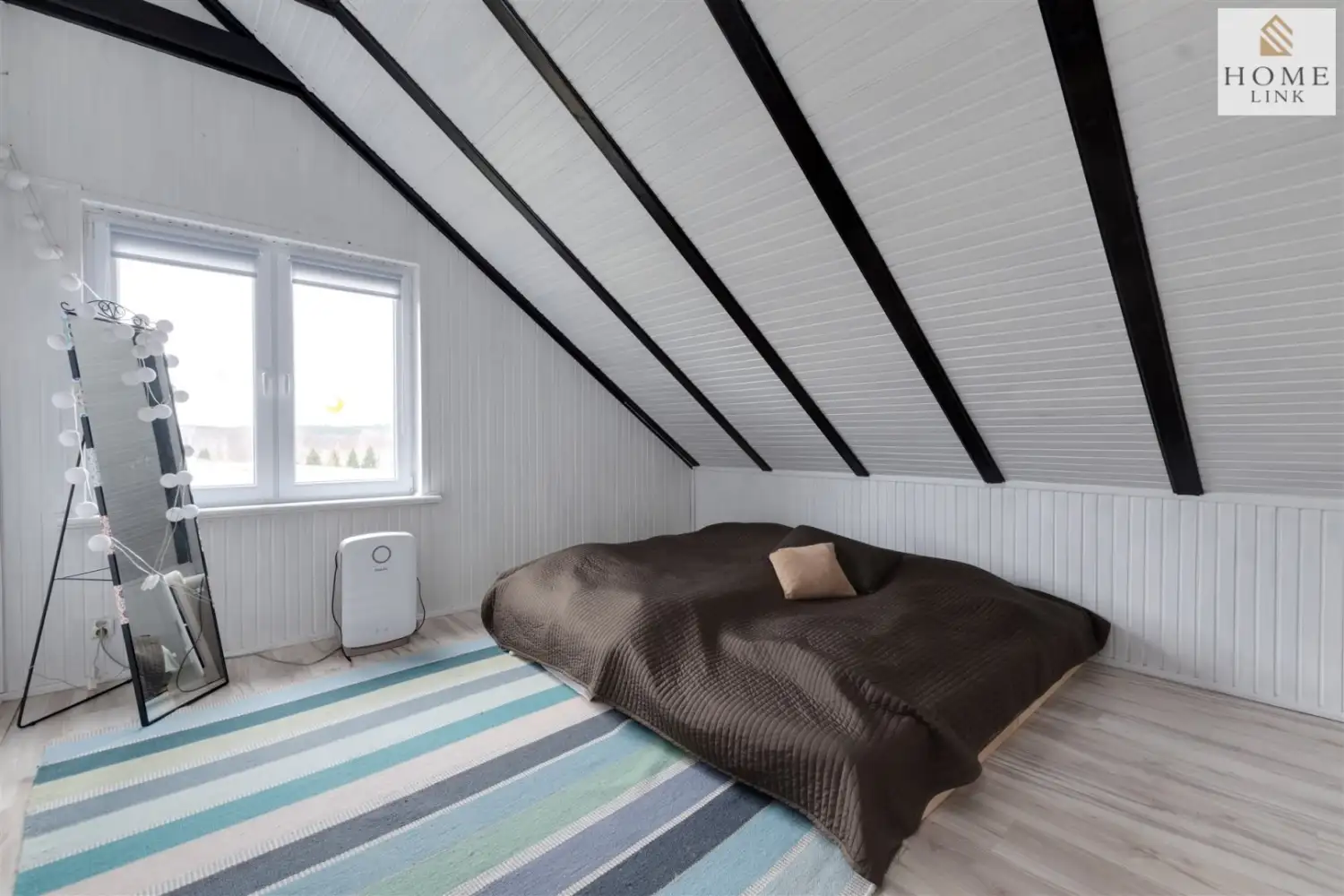 Na poddaszu znajdują się cztery sypialnie - jasne i przytulne, a każda z nich stwarza idealne warunki do wypoczynku dla rodziny lub grupy przyjaciół, którzy pragną spędzić niezapomniane chwile w jednym miejscu. Z dwóch pokoi wyjście na taras, a z pozostałych rozpościera się widok na jezioro.