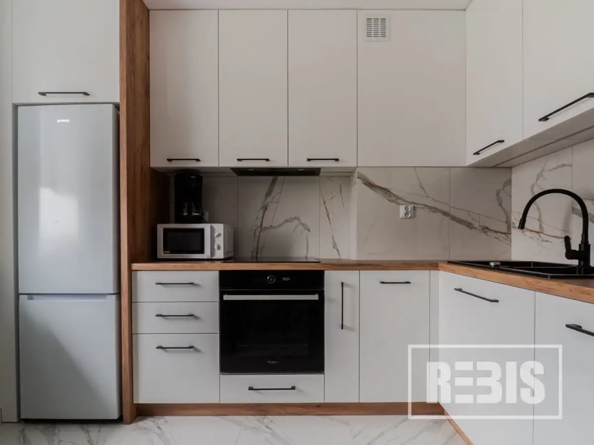 Wyposażenie: pralka, telewizor, odkurzacz, podstawowe wyposażenie kuchni, piekarnik, płyta indukcyjna, zmywarka, okap, lodówka