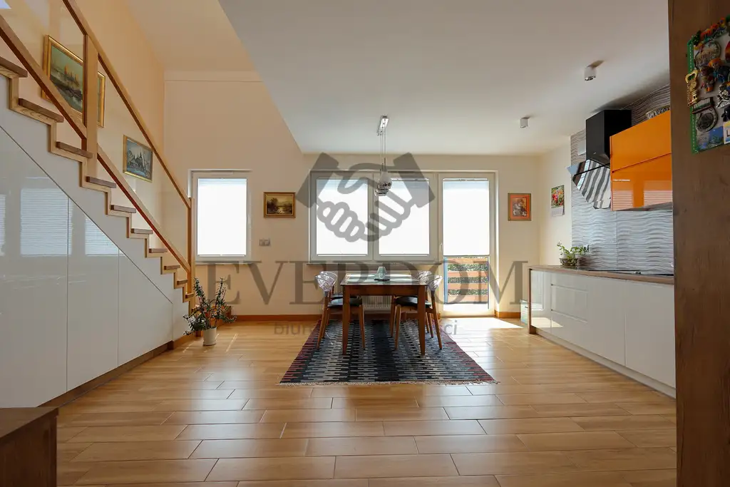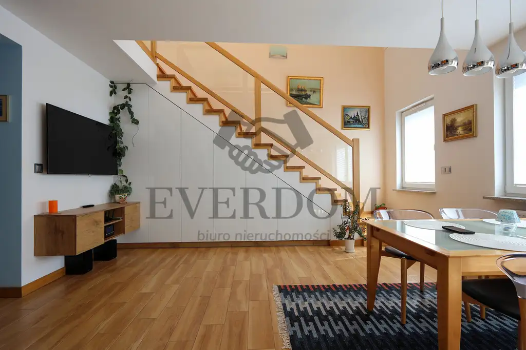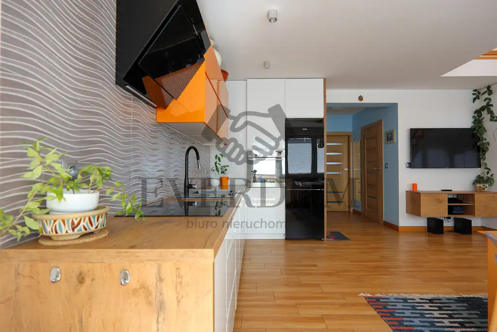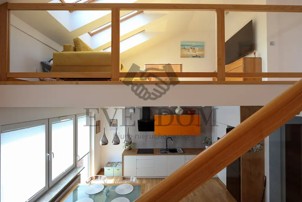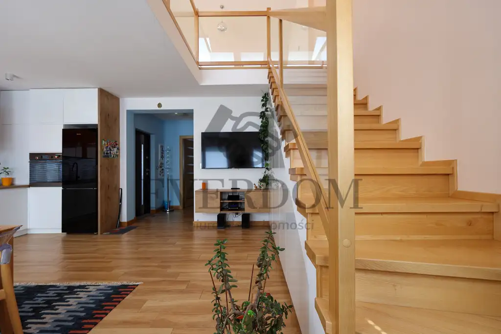 Na sprzedaż dwupoziomowy lokal mieszkalny o powierzchni użytkowej 71,44 m² (powierzchnia całkowita 90 m²) usytuowany na pierwszym piętrze budynku z 2019 roku, w którego skład wchodzi: