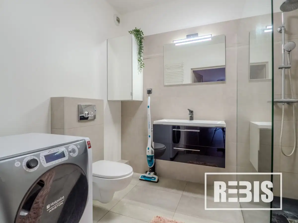 Wyposażenie: Pralko-suszarka, telewizor, odkurzacz, podstawowe wyposażenie kuchni, piekarnik, płyta indukcyjna, zmywarka, okap, klimatyzacja.