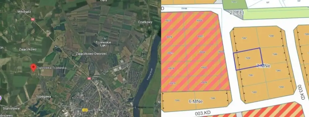 Zgodnie z zaświadczeniem Wójta Gminy Tczew nr WKI.6727.1.77.2025 z dnia 19.03.2025 r. działka nr 73/59 obrębu Dąbrówka Tczewska, gm. Tczew, położona jest na obszarze objętym miejscowym planem zagospodarowania przestrzennego uchwalonym Uchwałą Nr VI/83/2003 Rady Gminy Tczew z dnia 26 marca 2003 r. Działka 73/59 znajduje się w strefie terenów zabudowy mieszkaniowej jednorodzinnej wolnostojącej.