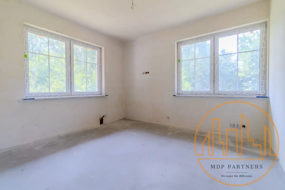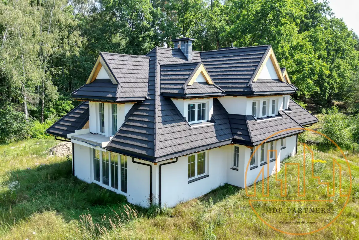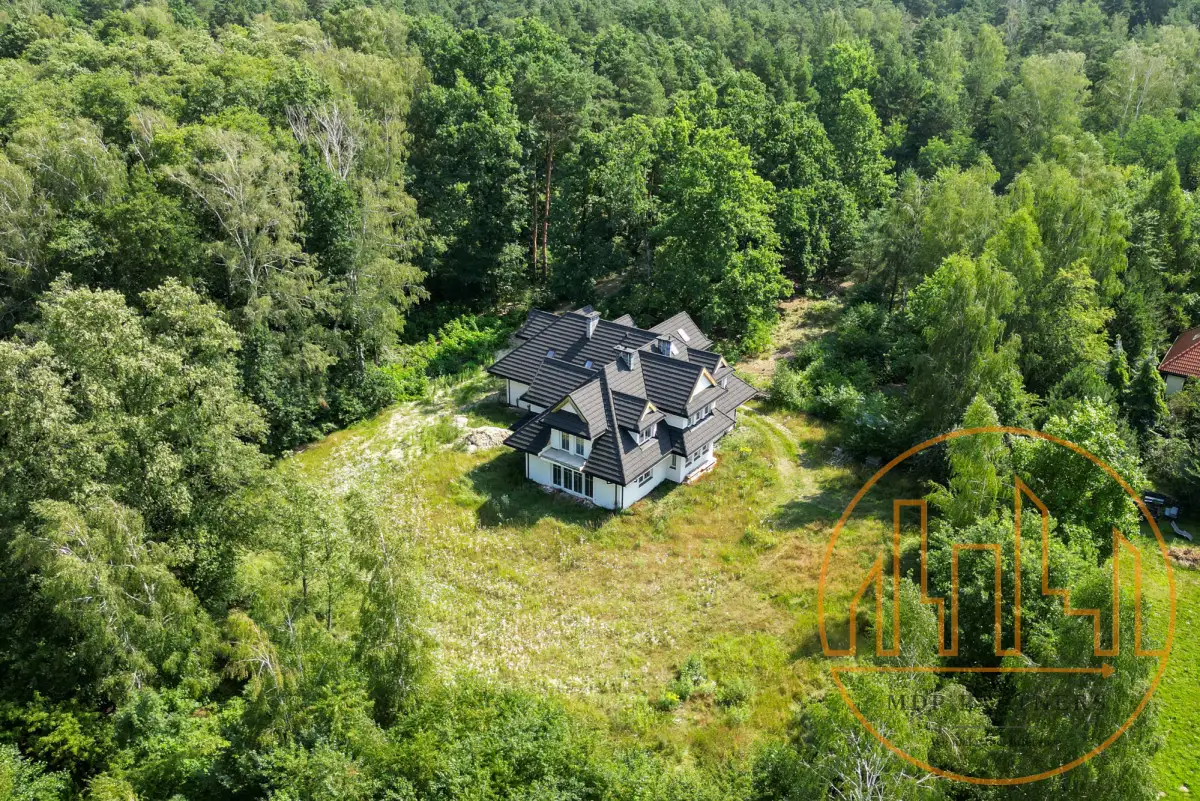 Dojazd do posesji prowadzi przez utwardzoną drogę gruntową, która rozciąga się na około 15 metrów wśród zieleni lasu, zapewniając nie tylko ciszę i spokój, ale także prywatność. Budynek jest w stanie "do wykończenia", co daje nowemu właścicielowi możliwość osobistego dostosowania wnętrz do swoich potrzeb i preferencji. Obecni właściciele, budując dom z myślą o sobie, postawili na wysoki standard wykończenia i nowoczesne rozwiązania. Zachwyci on każdego, kto marzy o eleganckim i komfortowym miejscu do życia.