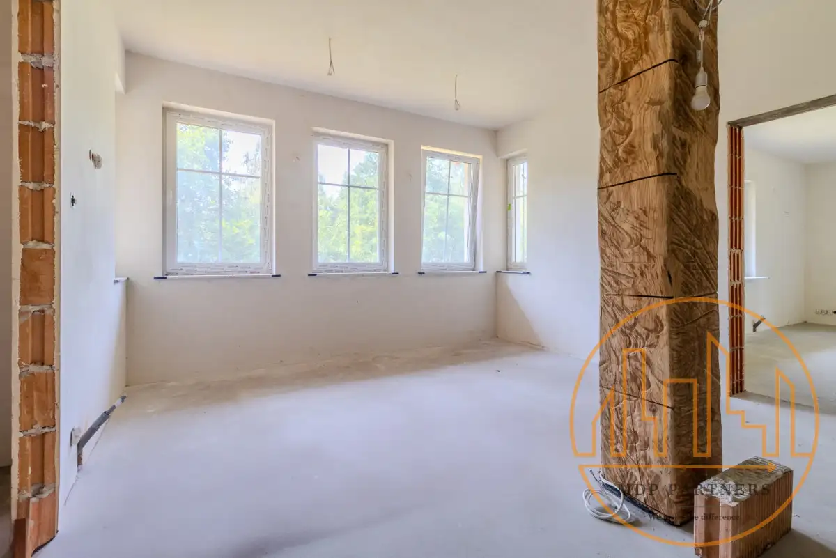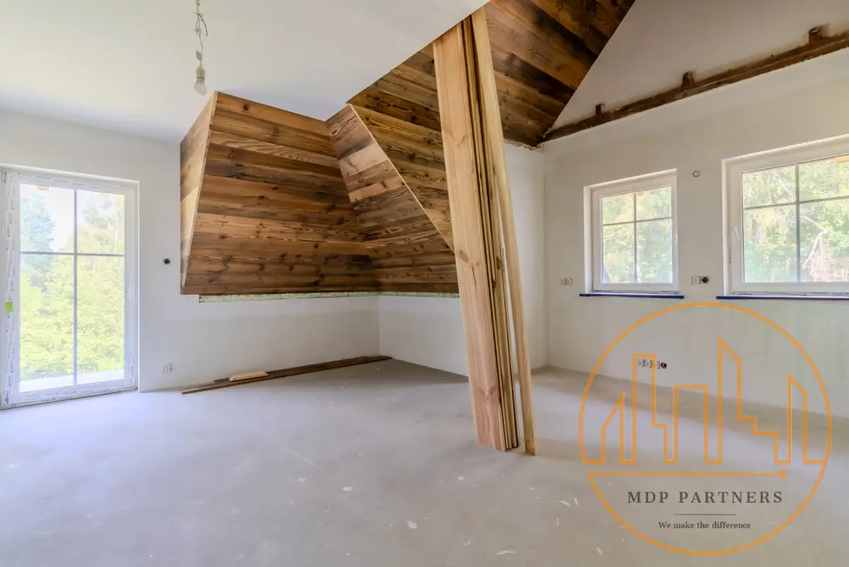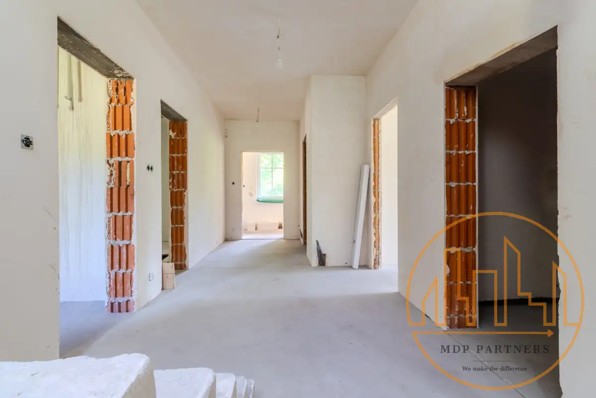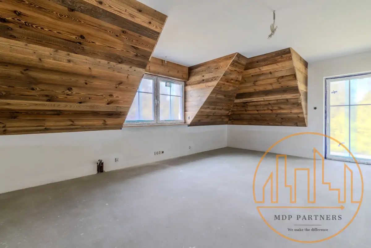 Dojazd do posesji prowadzi przez utwardzoną drogę gruntową, która rozciąga się na około 15 metrów wśród zieleni lasu, zapewniając nie tylko ciszę i spokój, ale także prywatność. Budynek jest w stanie "do wykończenia", co daje nowemu właścicielowi możliwość osobistego dostosowania wnętrz do swoich potrzeb i preferencji. Obecni właściciele, budując dom z myślą o sobie, postawili na wysoki standard wykończenia i nowoczesne rozwiązania. Zachwyci on każdego, kto marzy o eleganckim i komfortowym miejscu do życia.