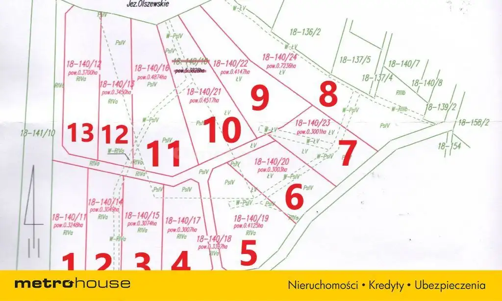 Kompleks 13 malowniczych działek nad Jeziorem Olszewskim Olszewo, gm. Olecko