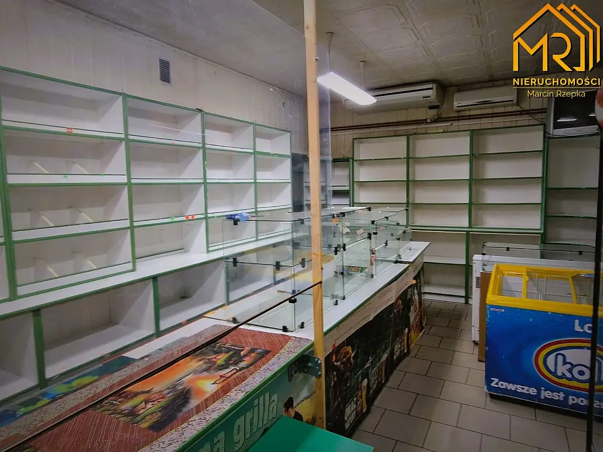 Nieruchomość składa się z jednego dużego pomieszczenia (sali sprzedażowej) oraz dwóch mniejszych pomieszczeń przeznaczonych na cele magazynowe socjalne oraz ubikację. Na podłodze znajdują się płytki, a ściany pokryte są panelami. Budynek posiada dwa wejścia, co zwiększa jego funkcjonalność. Częściowe wyposażenie budynku jest wliczone w cenę. Przed wejściem od ulicy duży taras.