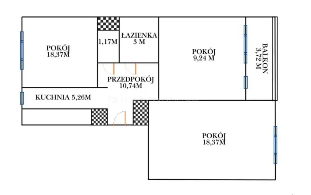 Mieszkanie dwustronne, z balkonem, ekspozycja wschodnio-zachodnia.