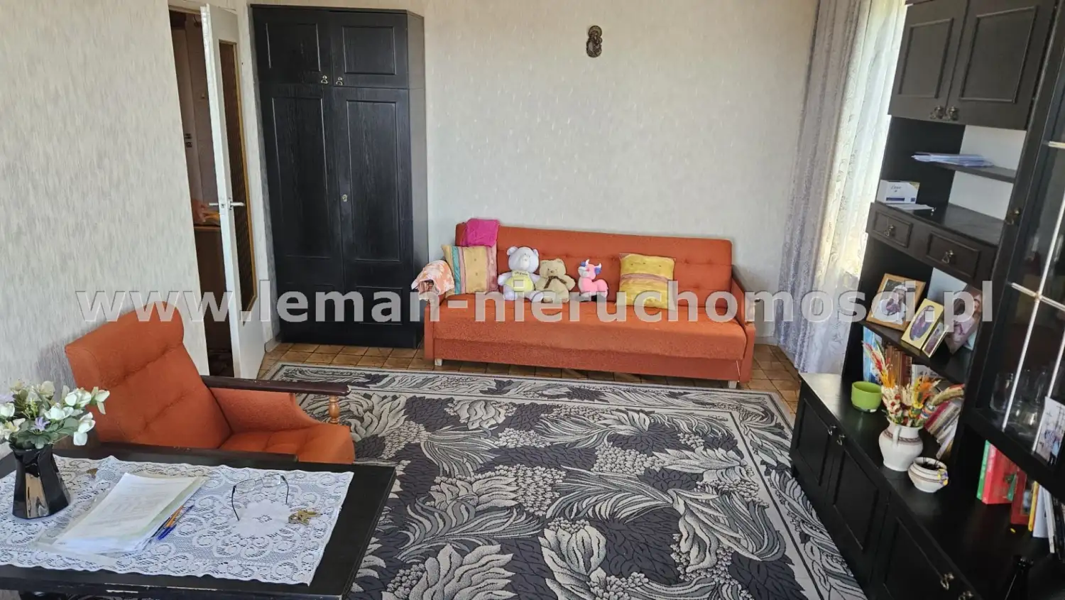 Nowe okna z PCV; na podłogach wykładzina.