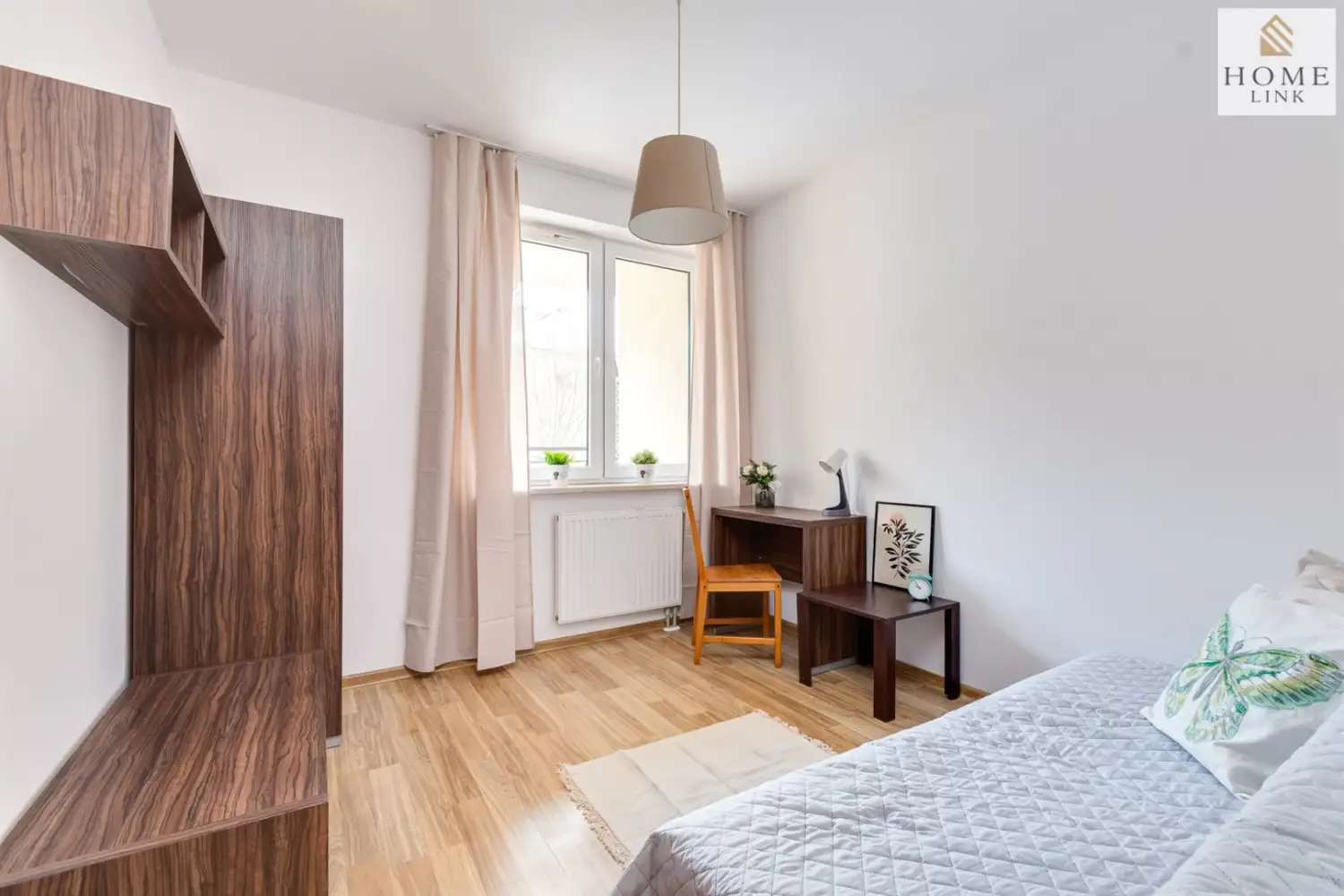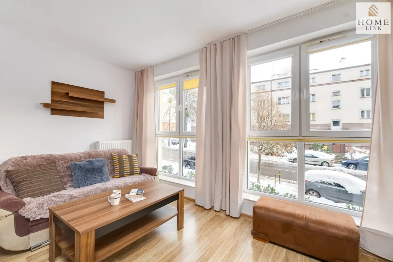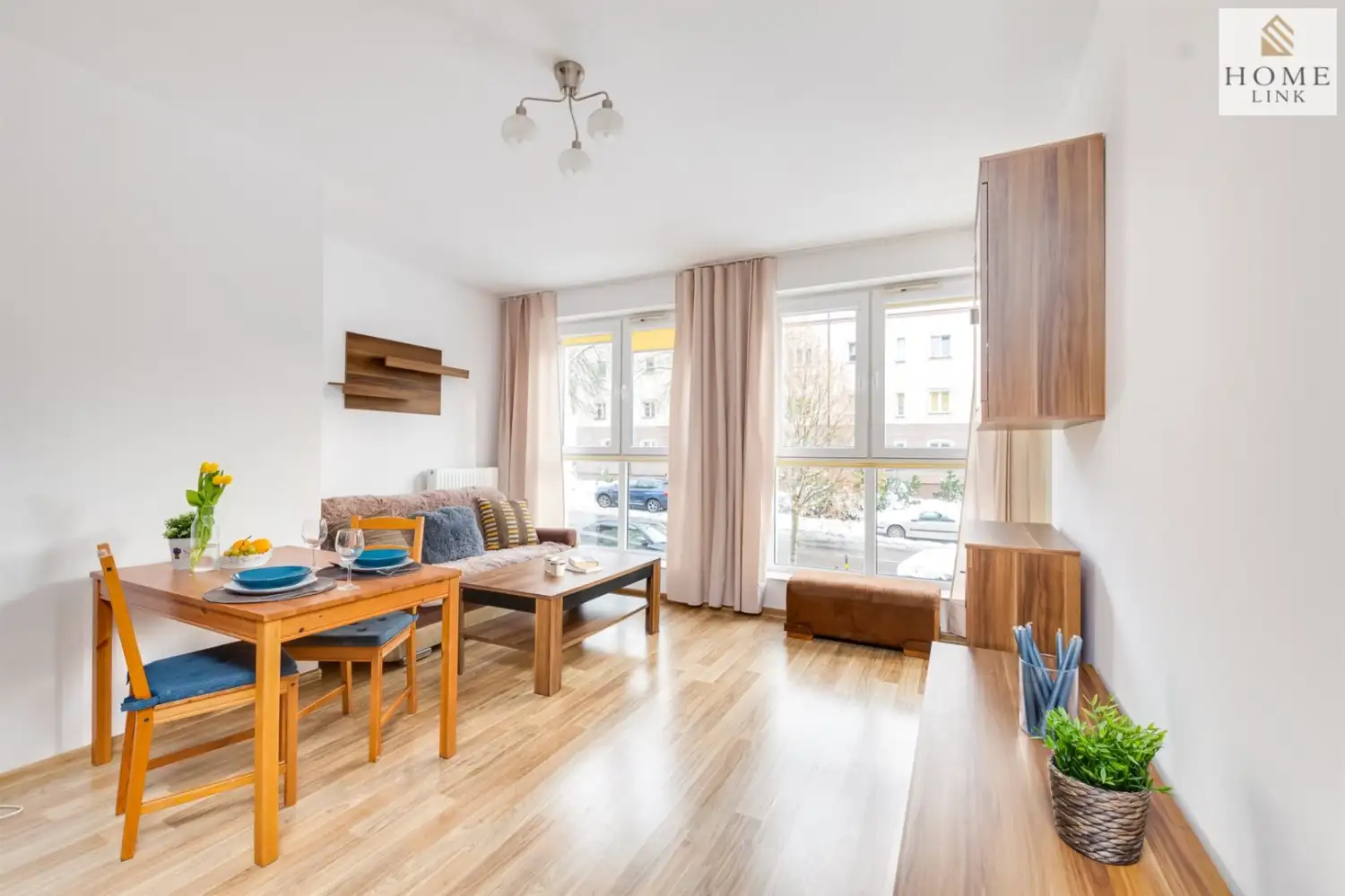 Mieszkanie jest bardzo widne, zarówno dzięki wspomnianej już wystawie, jak również dzięki dużym witrynom oraz oknom balkonowym. Mieszkanie jest również bardzo przestronne, pomimo nie za dużego metrażu, z uwagi na zagospodarowanie przestrzeni na duże pokoje oraz łazienkę. Z uwagi na niskie opłaty wynoszące około 480zł w przeliczeniu na 1 osobę, jest to świetna propozycja dla osób, szukających ekonomicznego i komfortowego w utrzymaniu mieszkania.