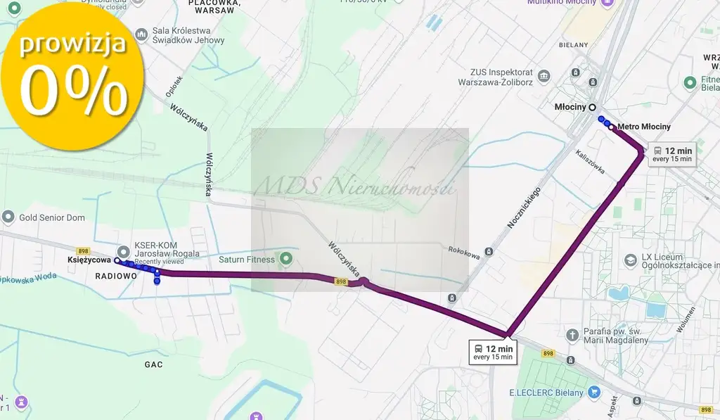 Do stacji metra Młociny 2,8 km, 6 min autem, 12 min autobusem