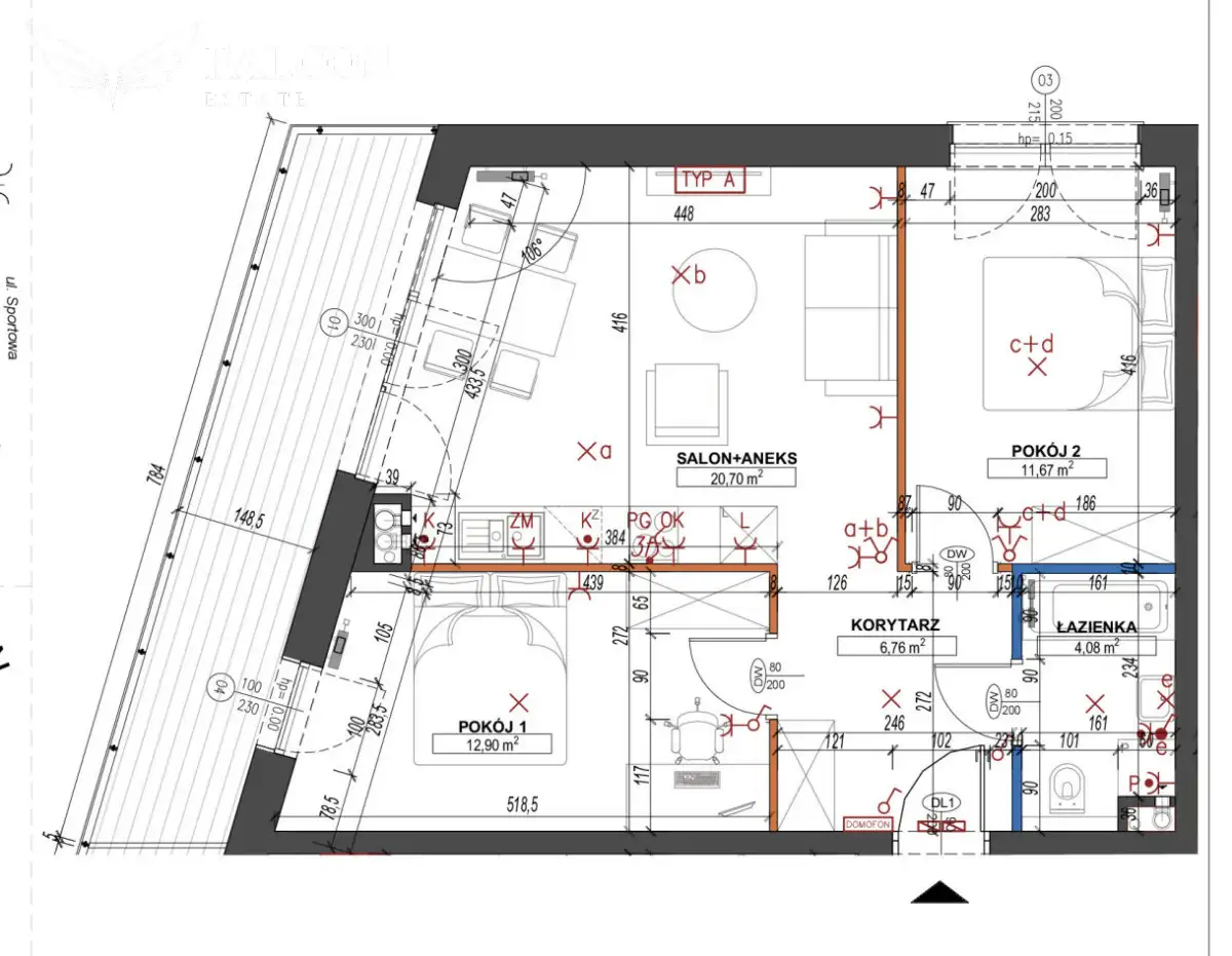3 pokojowego mieszkania z dużym balkonem w stanie deweloperskim