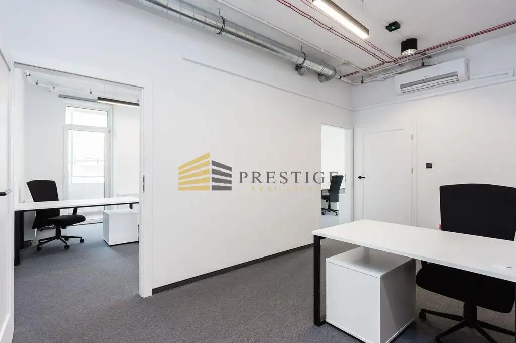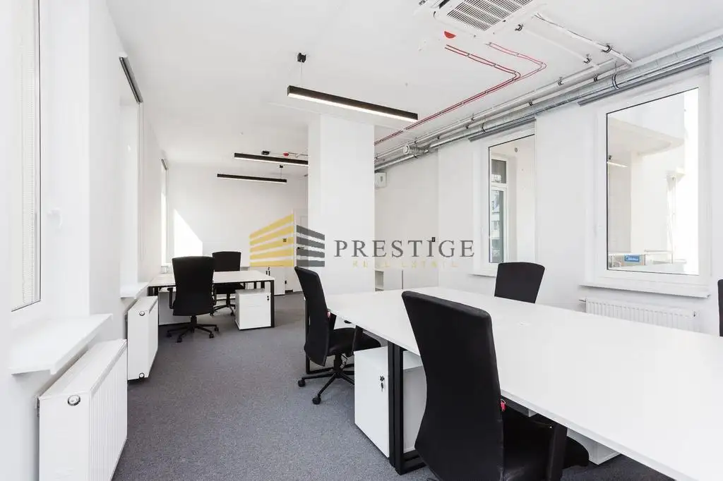 We are pleased to present you with a modern office spanning 84 square meters, located in a prestigious area in the heart of Warsaw. The office is situated on the 6th floor of a modern office building.
