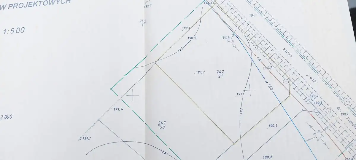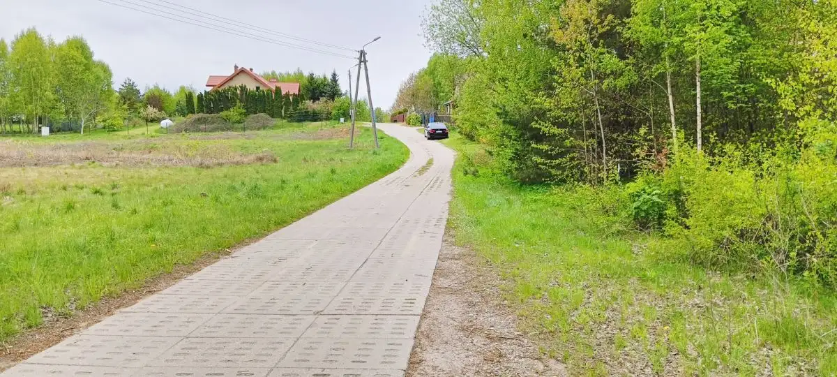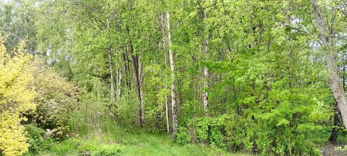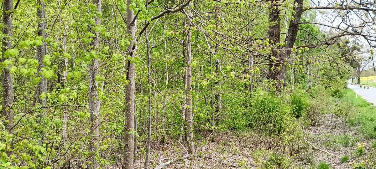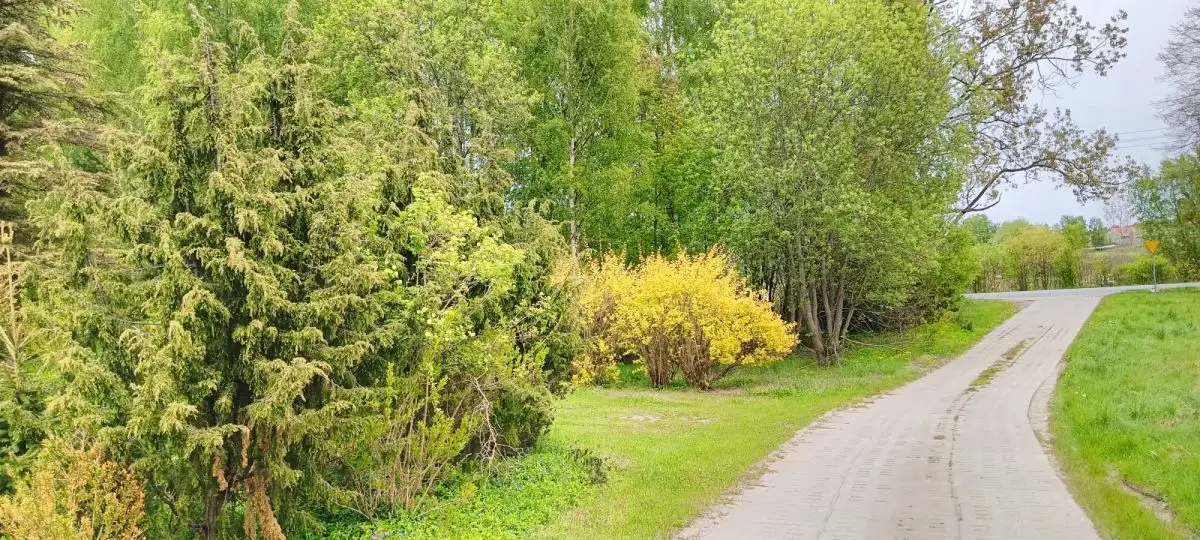 Nieruchomość w kształcie prostokąta, teren równy, zalesiony, jest pozwolenie na wycinkę drzew.