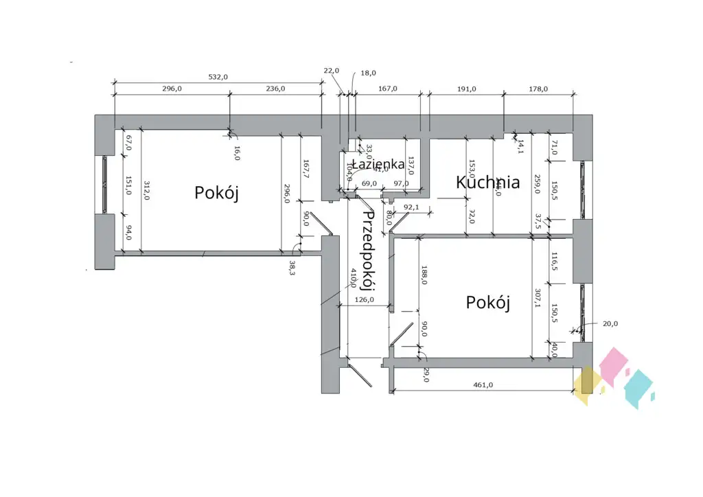 - 2 pokoje, które mogą służyć za salon oraz sypialnię,