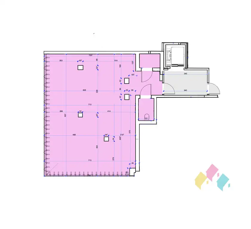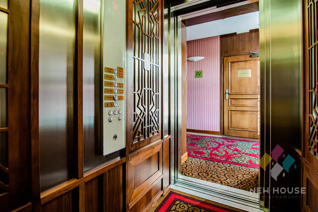 Lokal położony na IV kondygnacji, o pow. użytkowej 74,61 m². Główne pomieszczenie (open space) ma pow. ok. 70 m², do tego mamy tu pomieszczenie socjalne, toaletę plus prawo do wyłącznego korzystania z korytarza o pow. 6,72 idealnie nadającego się na poczekalnię, hall itp. Wyjątkowo jak dla lokali w tym budynku do lokalu przynależy także obszerna piwnica (10, 22 m²), która może pełnić np. funkcję magazynu. Lokal w pełni wykończony materiałami wysokiej jakości, po niedawnym remoncie. Wejść do lokalu można z prywatnej windy lub z wspólnego korytarza na piętrze, do którego również dojeżdża obszerna winda. Na parterze eleganckie lobby.