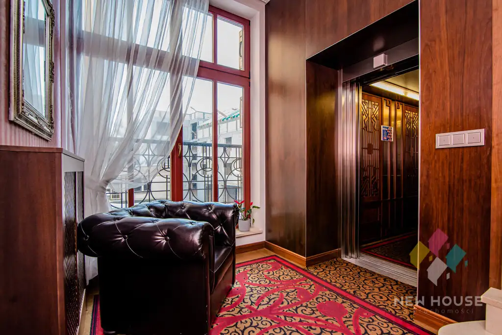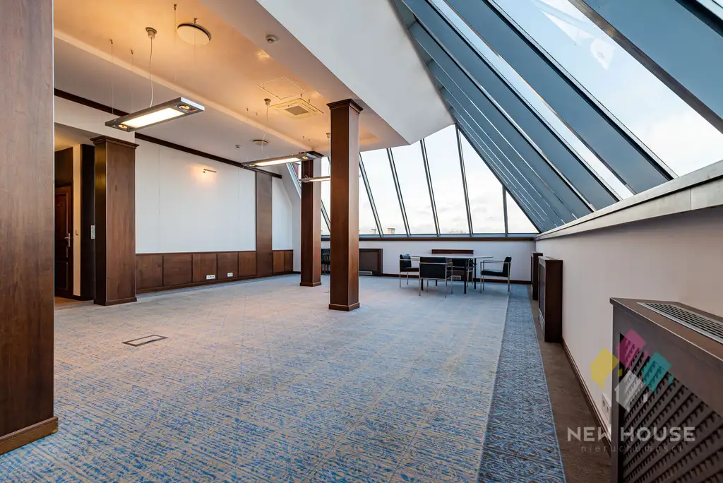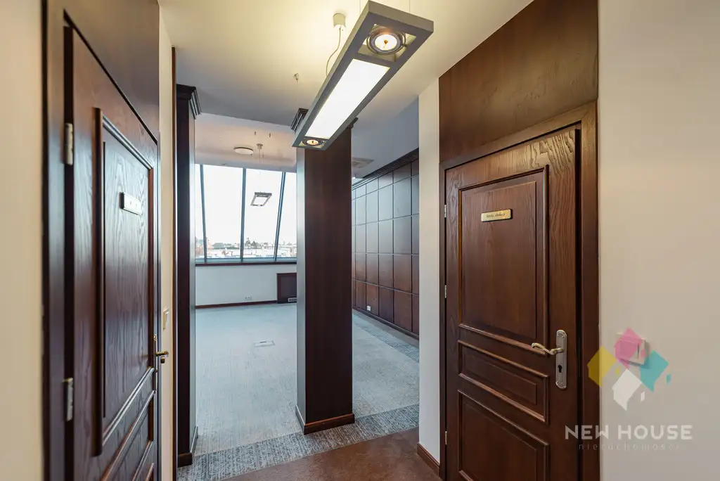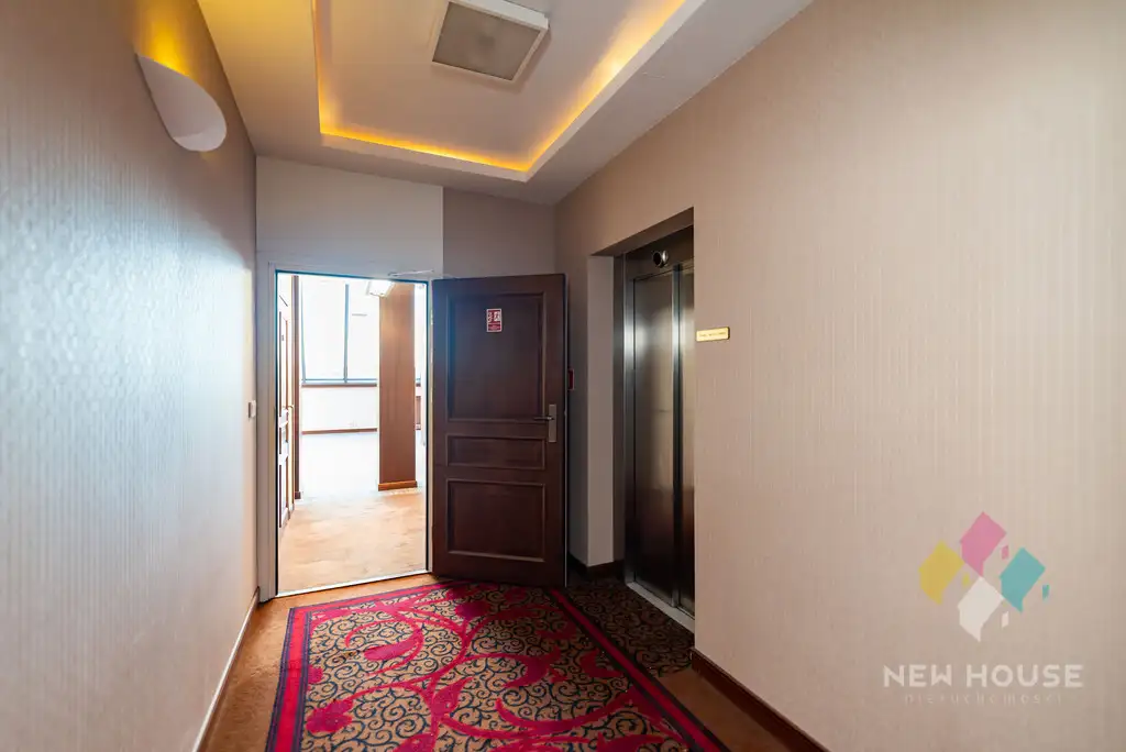 Unikatowa przestrzeń - otwarta powierzchnia z widokiem na śródmieście Olsztyna. Prestiżowe położenie, dwie przeszklone ściany (delikatne skosy), prywatna winda, klimatyzacja. Wykończone materiałami wysokiej jakości. Znakomita lokalizacja, w reprezentacyjnym budynku gabinety, apartamenty, restauracja. Wiele możliwości aranżacyjnych: biurowych, usługowych, także możliwość stworzenia apartamentowego mieszkania.