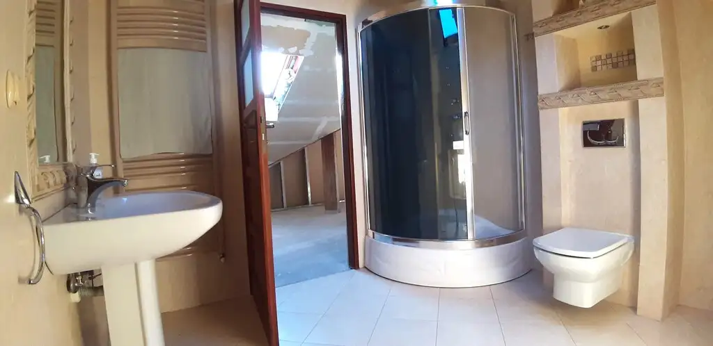 Na poddaszu: 2 pokoje, łazienka i pralnia.