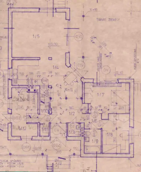 Jest parterowy z poddaszem mieszkalnym i jest całkowicie podpiwniczony.