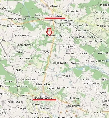Nieruchomość położona jest w Śladkowie Małym, w gminie Chmielnik, przy trasie na Busko Zdrój (32 km od Kielc, 14 od Buska, 3 km od Chmielnika).