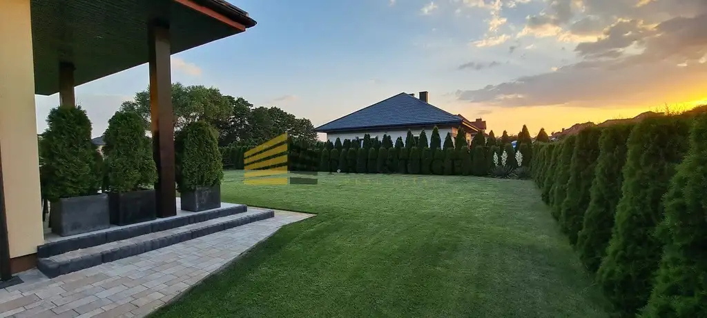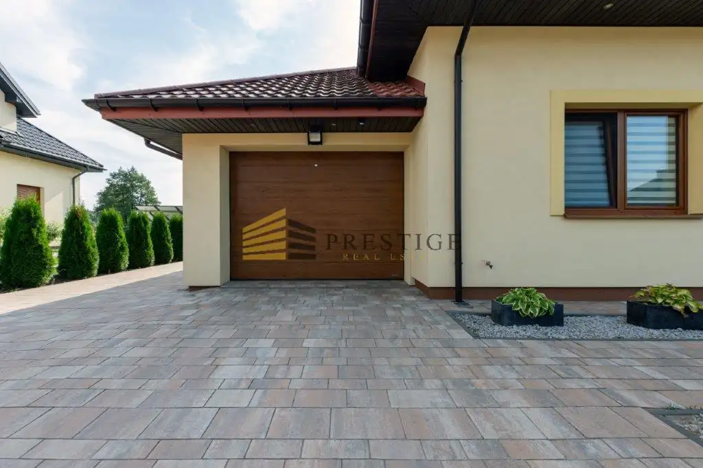 There is a beautiful, green, well-maintained garden surrounding the house from three sides: west, south, and north; a utility/garden cottage with an area of approximately 20m², garage with a drainage system at the gate (+ attic above the garage) and space for 2-3 cars in the driveway, a garbage shelter.