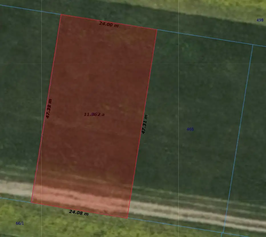 Możliwe jest także połączenie dwóch lub trzech parceli, co daje odpowiednio 2261 m² lub 3392 m². Wszystkie działki mają kształt prostokąta, a teren jest płaski i znajduje się na lekkim wzniesieniu.