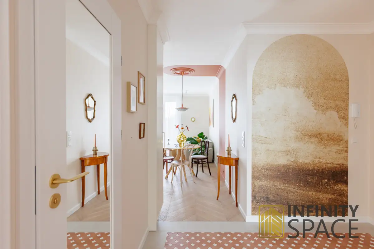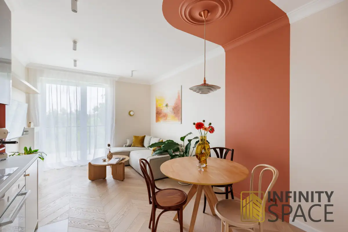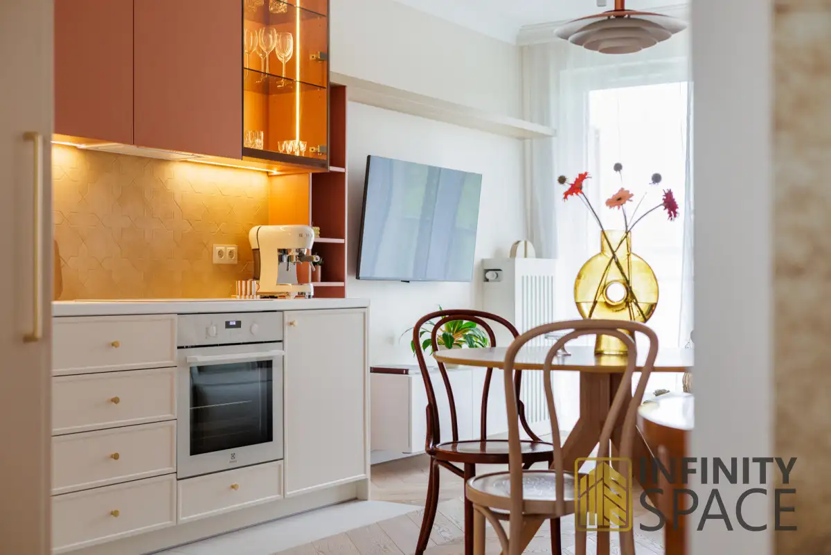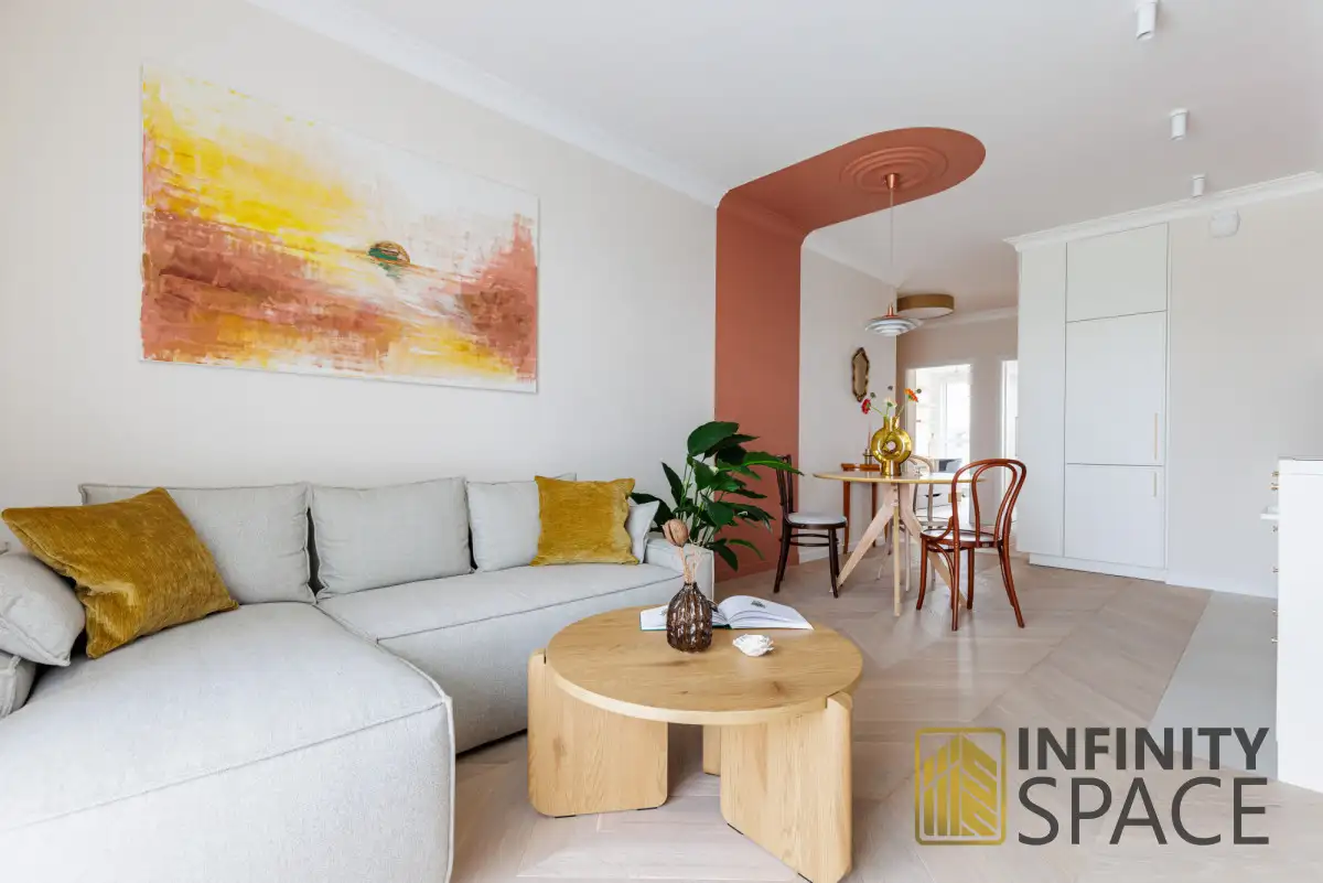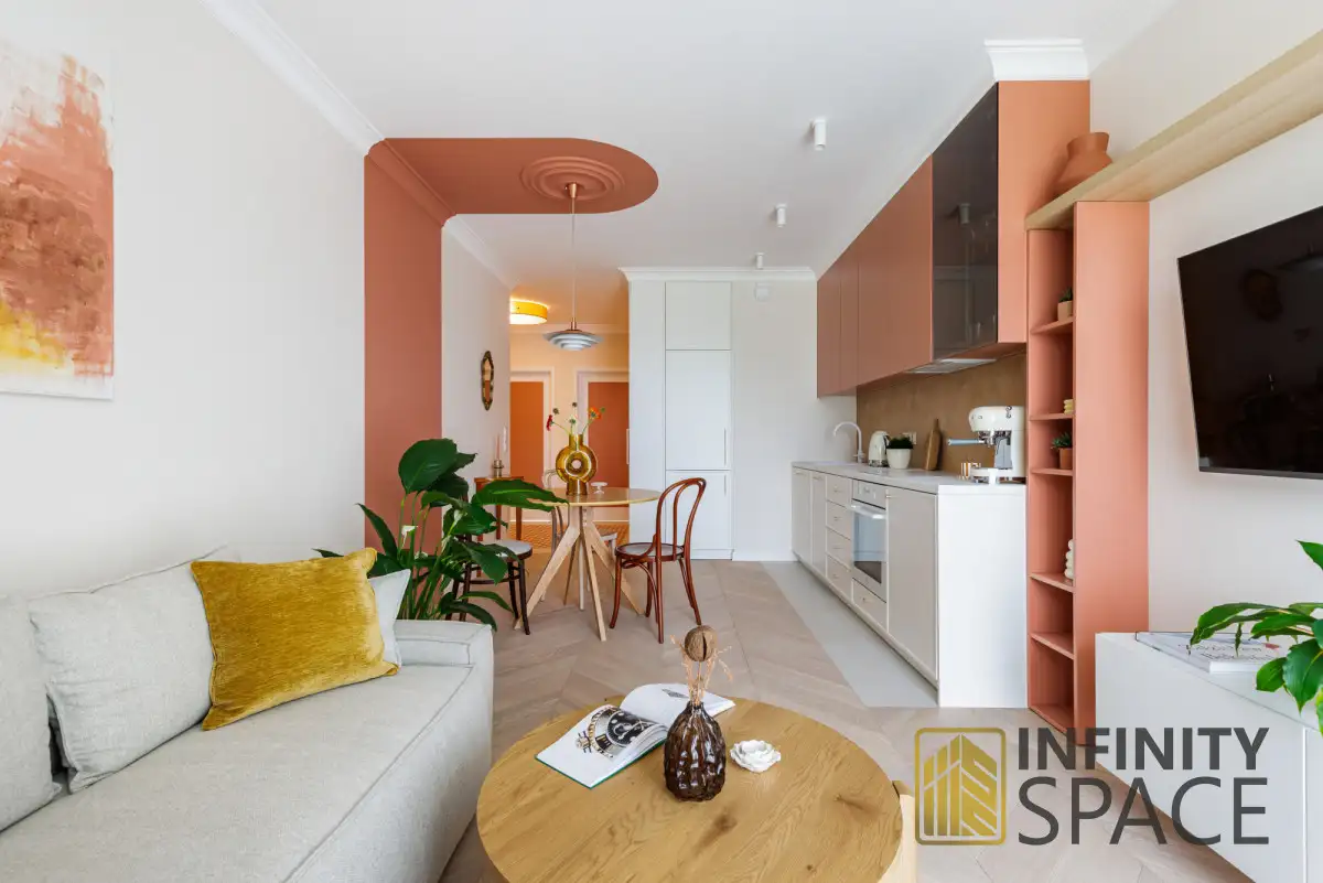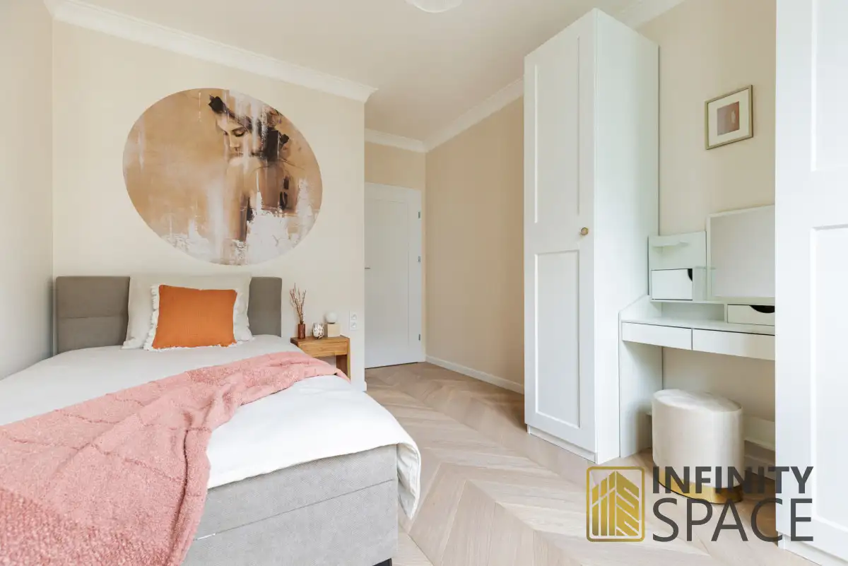 The apartment has been furnished to a high standard - everything is completely new, no one has lived in it before. Interiors designed with attention to detail - inspired by the retro style, using high-quality materials, custom-made furniture and designer lighting. Fully equipped - ready to move in immediately.