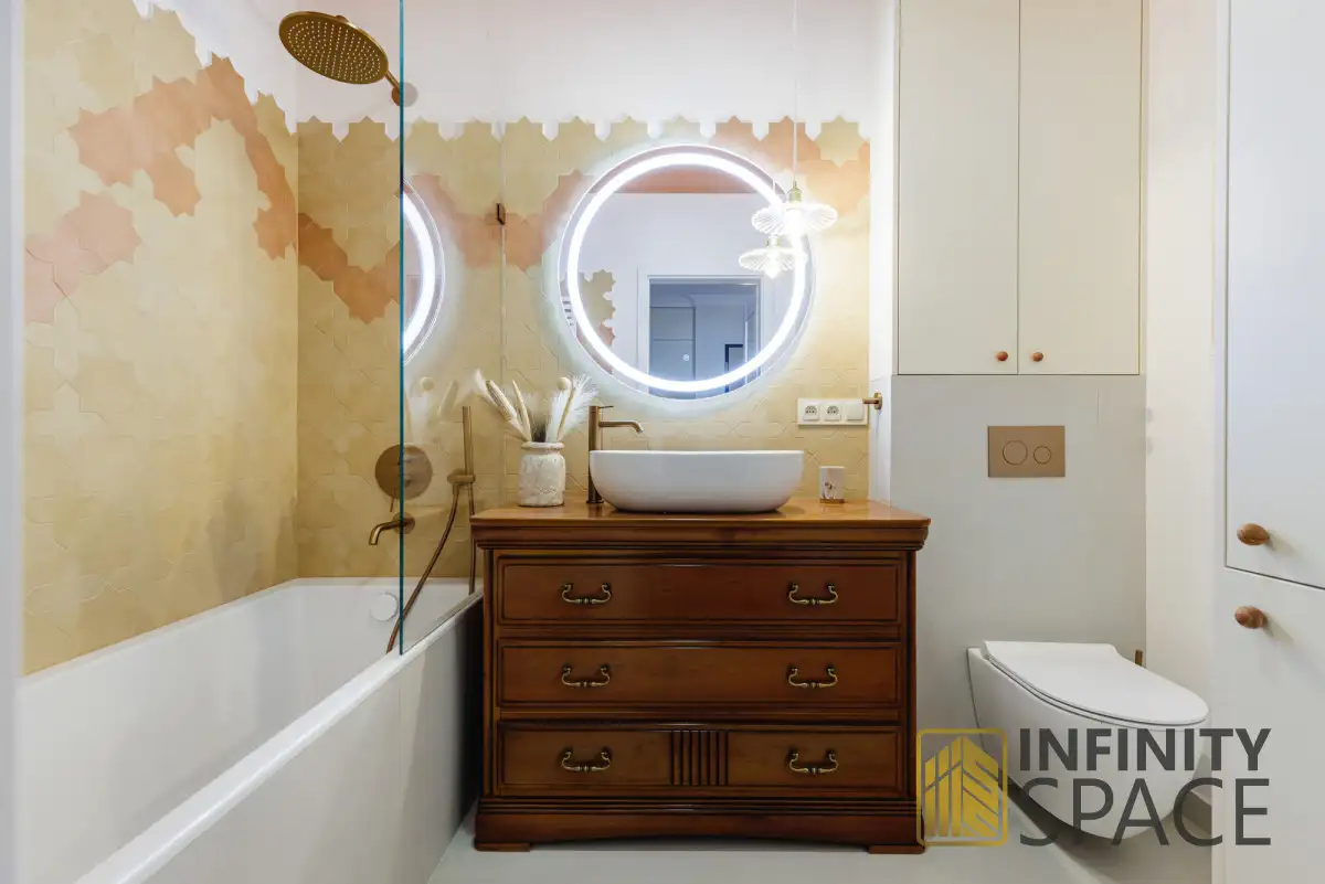 Mieszkanie zostało urządzone w wysokim standardzie - wszystko jest zupełnie nowe, nikt wcześniej w nim nie mieszkał. Wnętrza zaprojektowane z dbałością o detale - inspirowane stylem retro, z wykorzystaniem wysokiej jakości materiałów, mebli na wymiar oraz designerskiego oświetlenia. W pełni wyposażone - gotowe do wprowadzenia się od zaraz.
