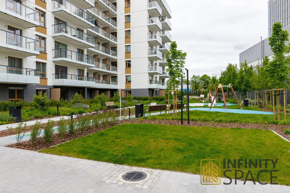 BUDYNEKNowoczesny, zadbany budynek z windą, wykończony w wysokim standardzie. Wspólne części budynku schludne, otoczenie zielone i spokojne, z placem zabaw. Mieszkańcy cenią sobie prywatność, bezpieczeństwo i przyjazną atmosferę.