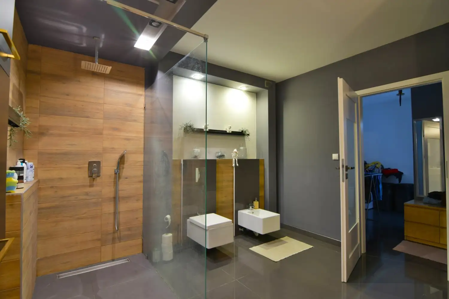 - łazienka z prysznicem i przejściem do praktycznej pralni,