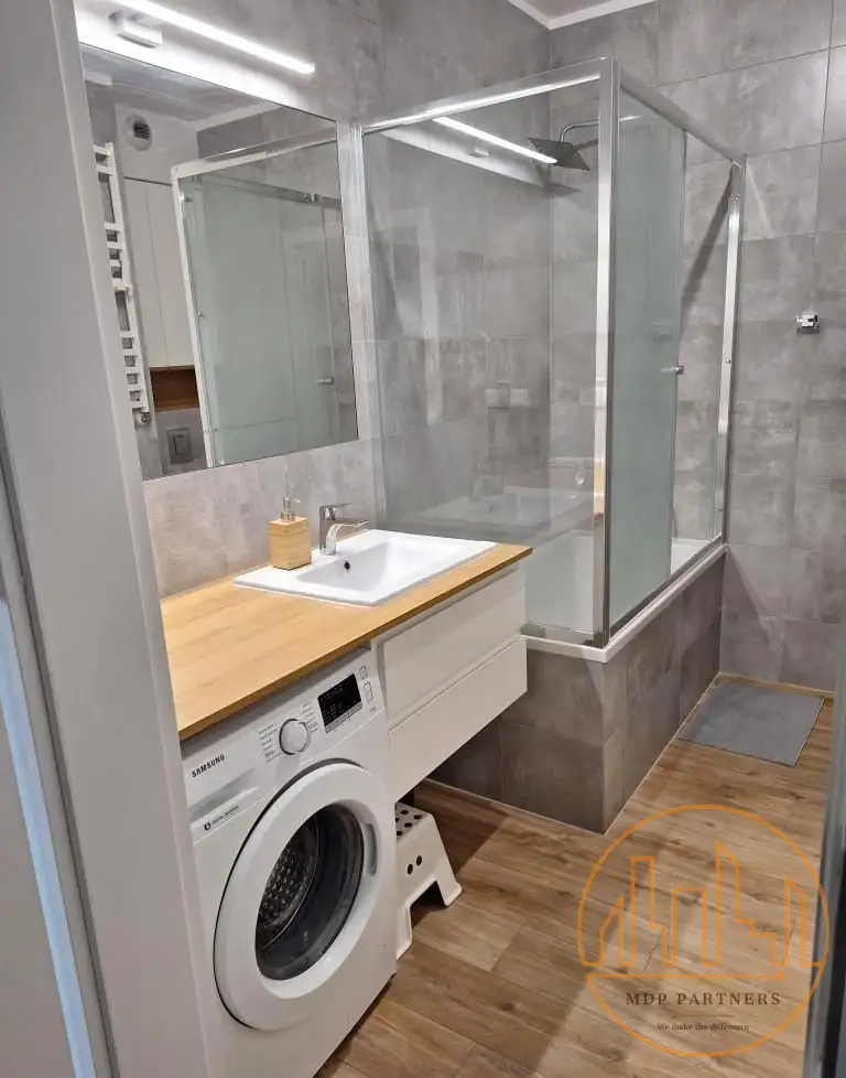 Dodatkową powierzchnię mieszkania stanowi balkon. Do mieszkania przynależy miejsce postojowe w garażu podziemnym ( dodatkowo płatne 50 000 zł ) Mieszkanie klimatyzowane, dwustronne. Ekspozycja Północ - Południe. Atuty nieruchomości:Klimatyzacja