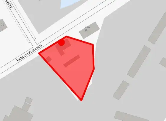 Nieruchomość położona jest w śródmiejskiej strefie miasta Ostrzeszowa przy ul. Tadeusza Kościuszki 21(drodze wojewódzkiej nr 449), utwardzonej asfaltobetonem. W otoczeniu znajdują się nieruchomości przemysłowe, nieruchomości usługowo – handlowe oraz nieruchomości mieszkalne z zabudową jednorodzinną Dostępne są następujące media: sieć elektroenergetyczna, wodociągowa (komunalna), sieć kanalizacji sanitarnej i deszczowej, sieć gazowa oraz sieci telekomunikacyjne. Przedmiotowa nieruchomość zabudowana budynkiem mieszkalnym wielorodzinnym, jednokondygnacyjnym z poddaszem użytkowym, częściowo podpiwniczony o pow. zabudowy 220,00 m². Na działce znajduje się także budynek gospodarczy parterowy, niepodpiwniczony z 6 boksami gospodarczymi, pomieszczeniem pralni oraz 2 ustępami suchymi. Budynek mieszkalny wielorodzinny wybudowany w latach 20-tych ub. wieku. Do zachodniej ściany szczytowej dobudowano przybudówkę z dachem płaskim. W budynku znajduje się 6 lokali mieszkalnych nie będących samodzielnymi lokalami mieszkalnymi w rozumieniu ustawy z dnia 24 czerwca 1994r. o własności lokali.