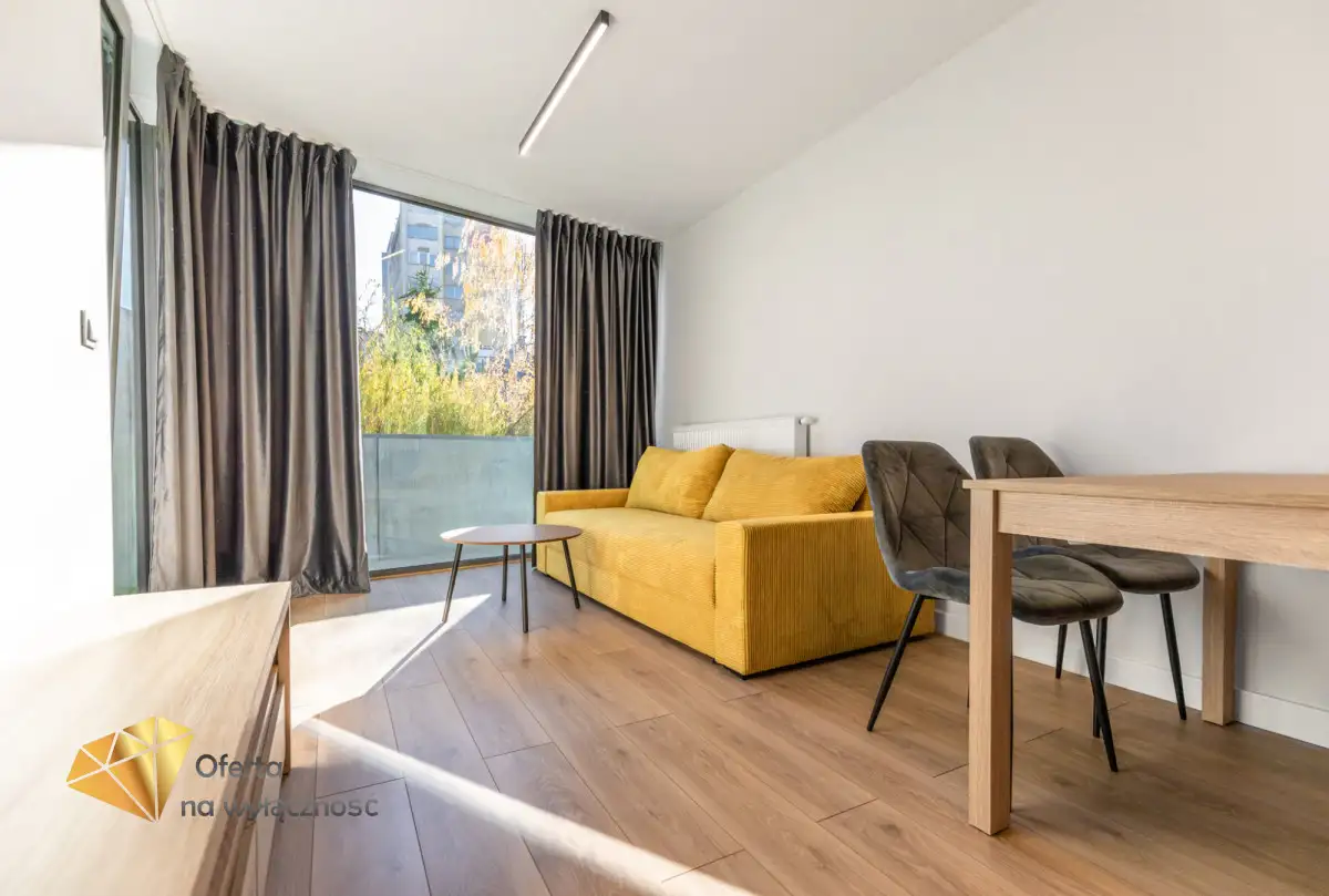 Mieszkanie w nowoczesnym standardzie, z klimatyzacją i tarasem dostępnym z obu pokoi.